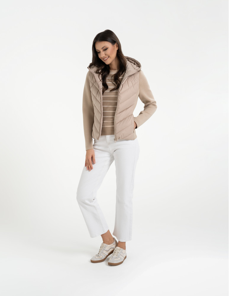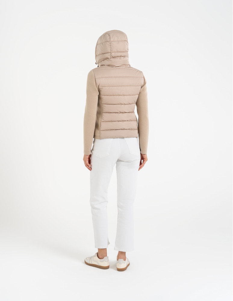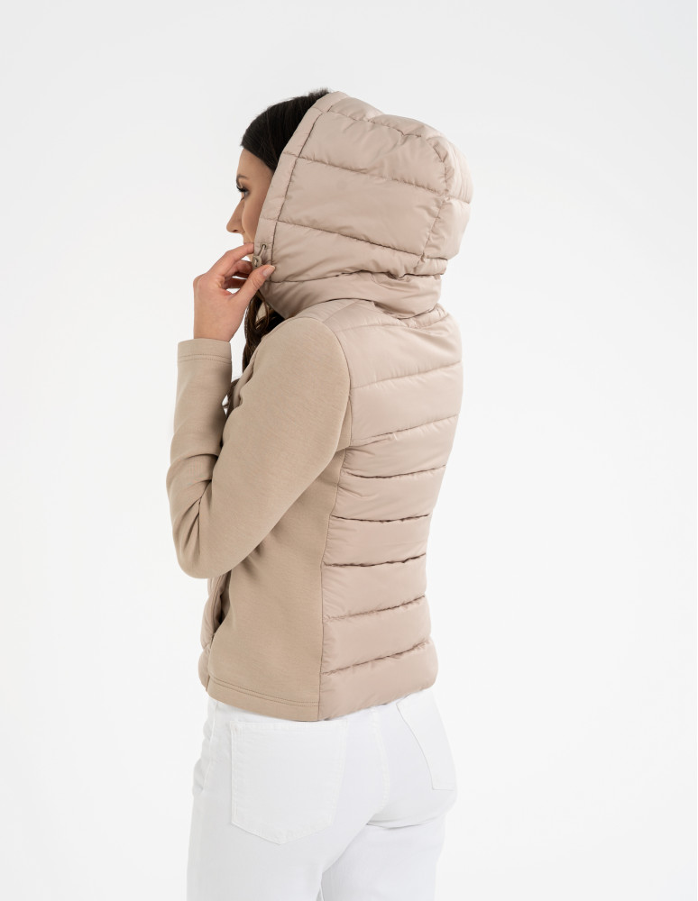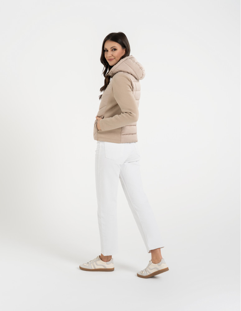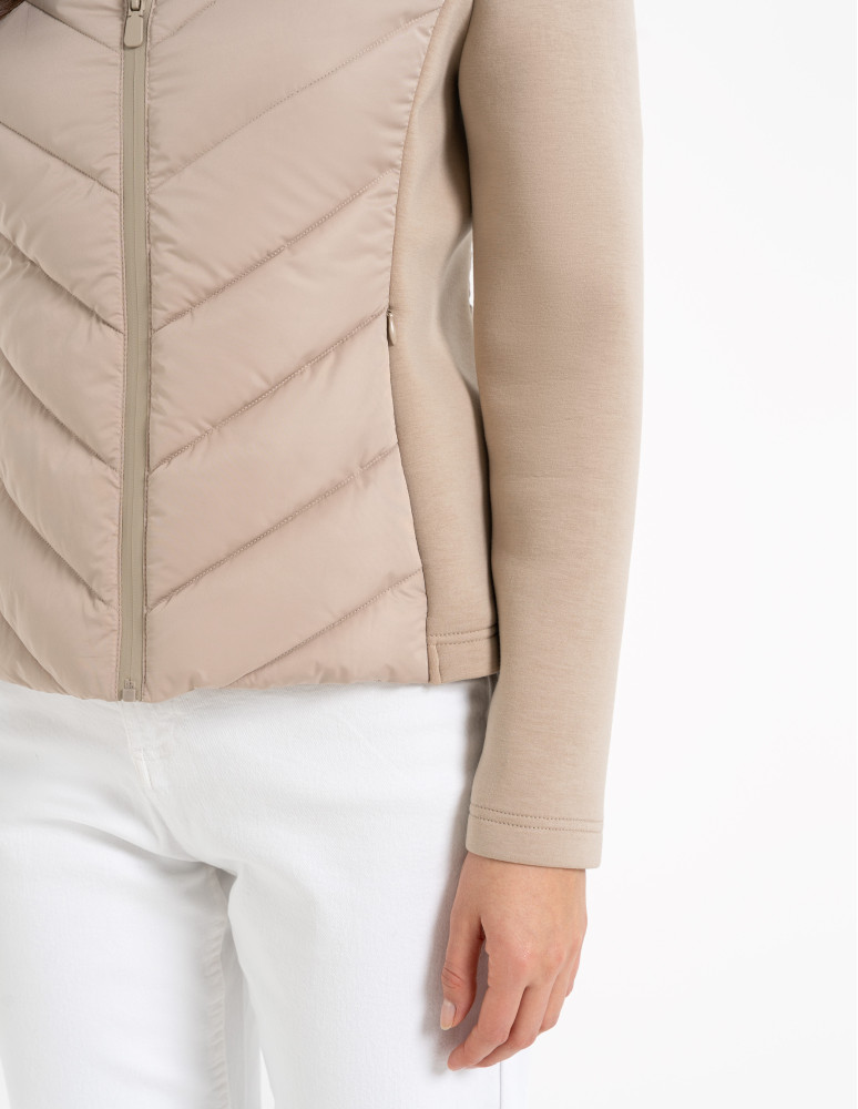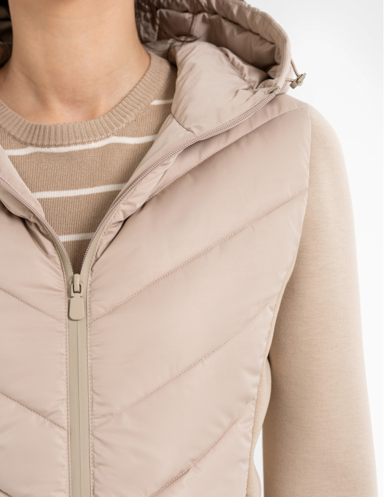 - Hybrydowa konstrukcja – połączenie pikowanego korpusu i miękkich rękawów