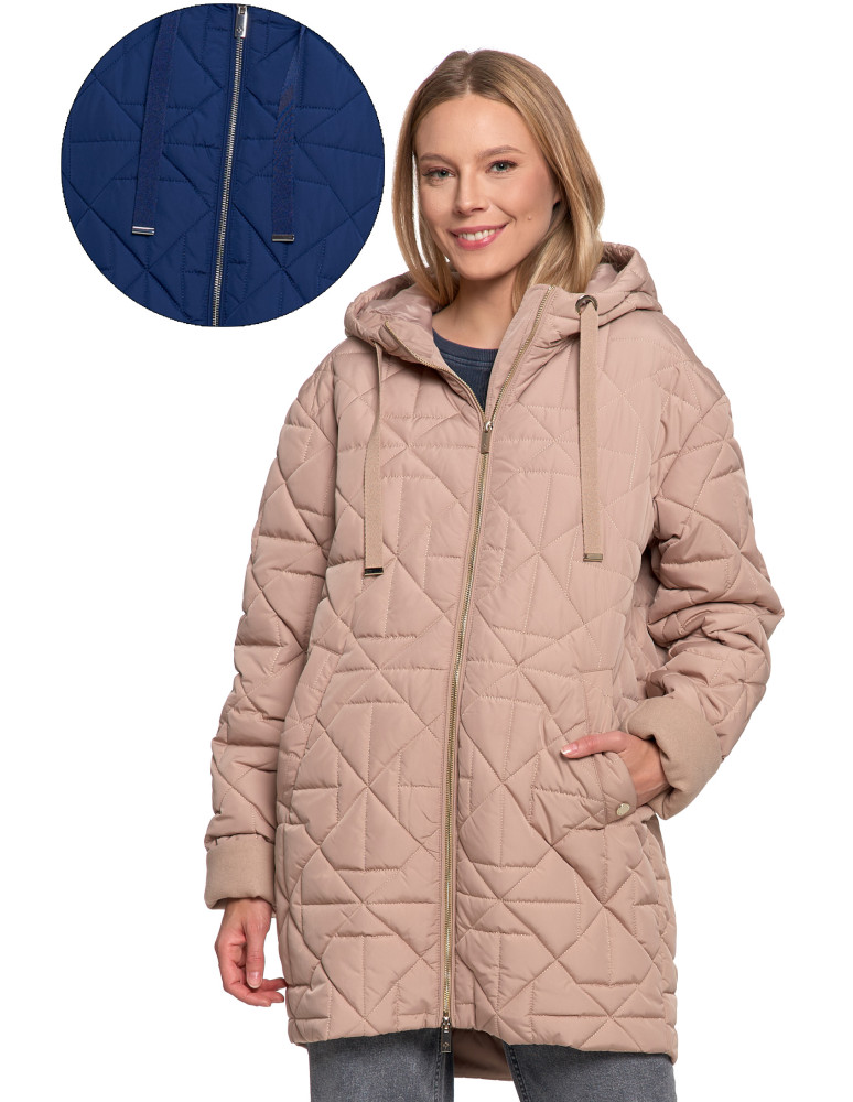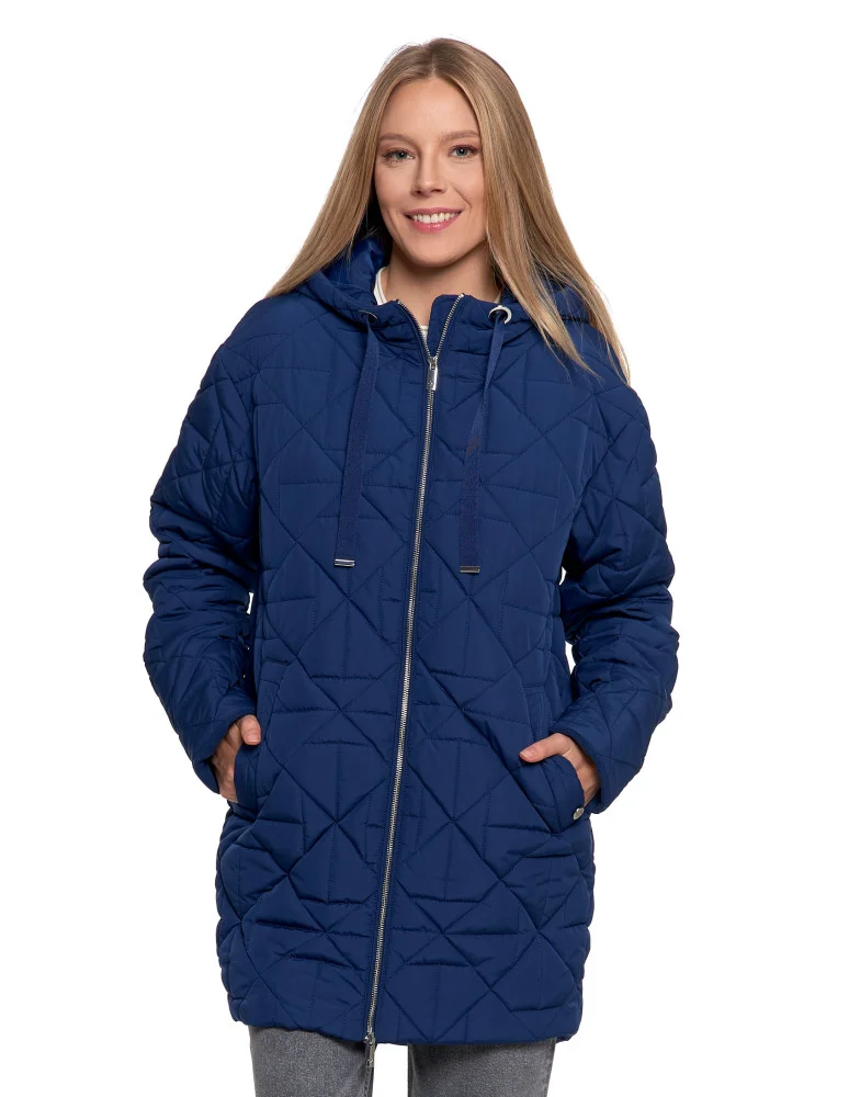 Kurtka damska pikowana z kapturem i mankietami z polaru GRANATOWY