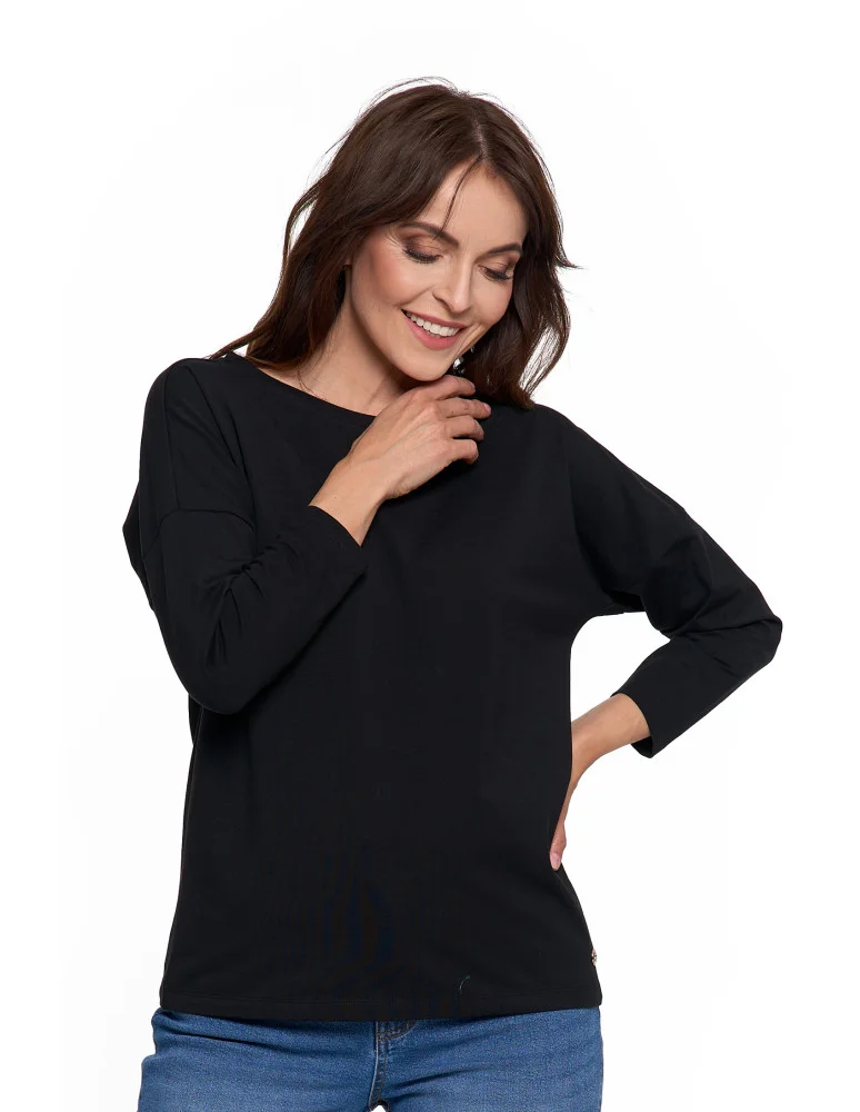 Bluzka damska bawełniana z rękawem 3/4 CZARNY