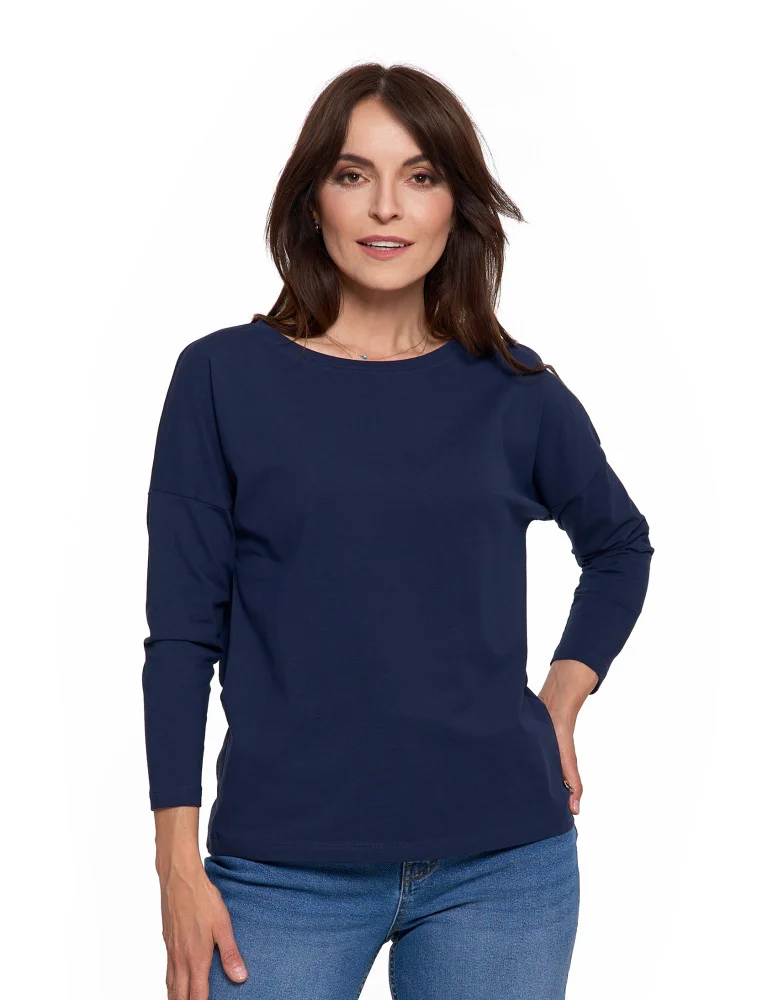 Bluzka damska bawełniana z rękawem 3/4 GRANATOWY