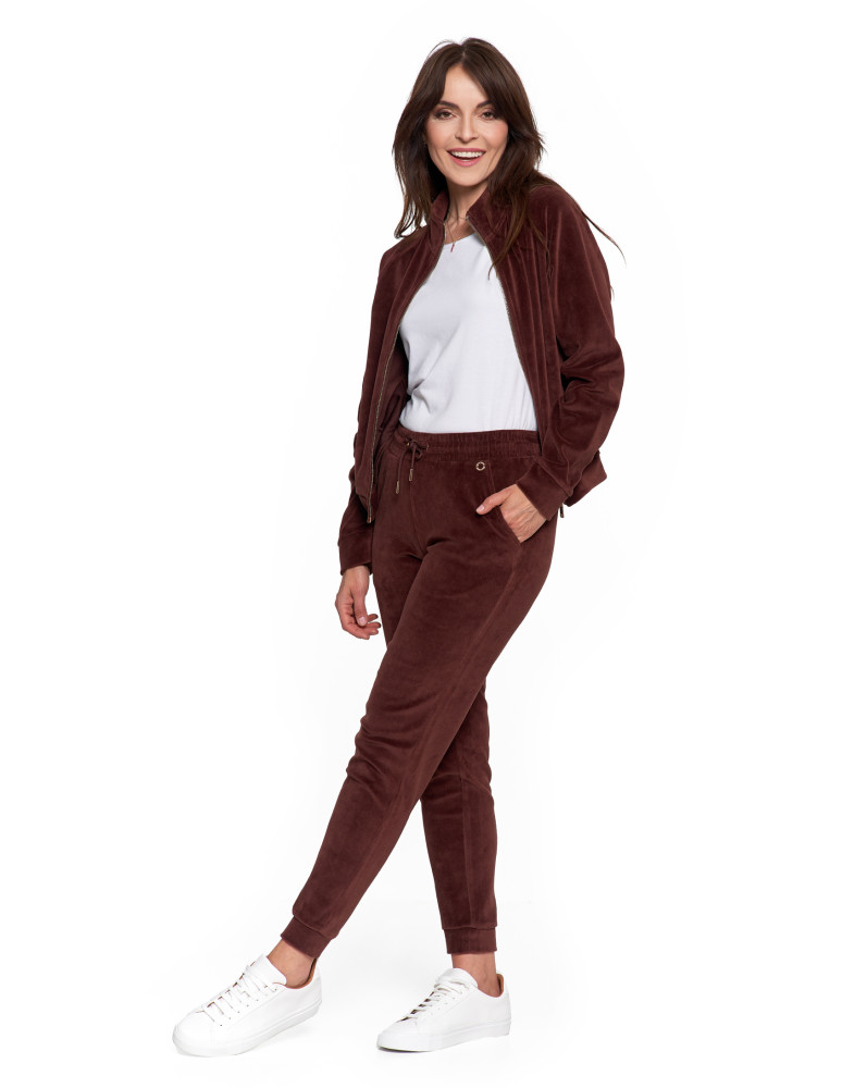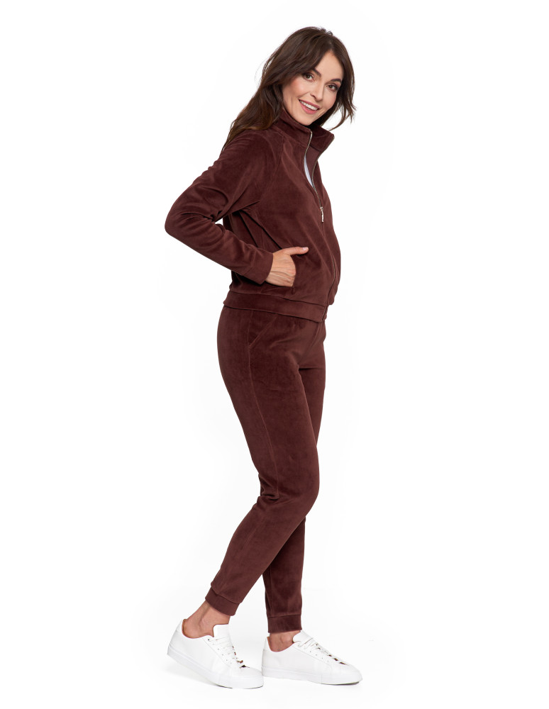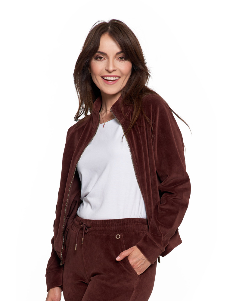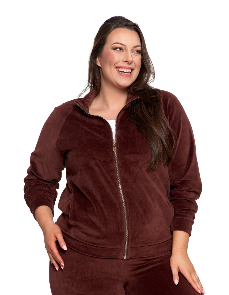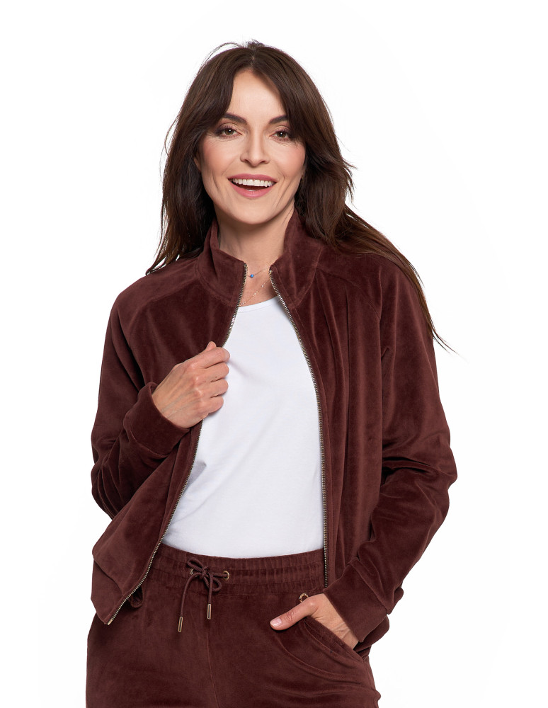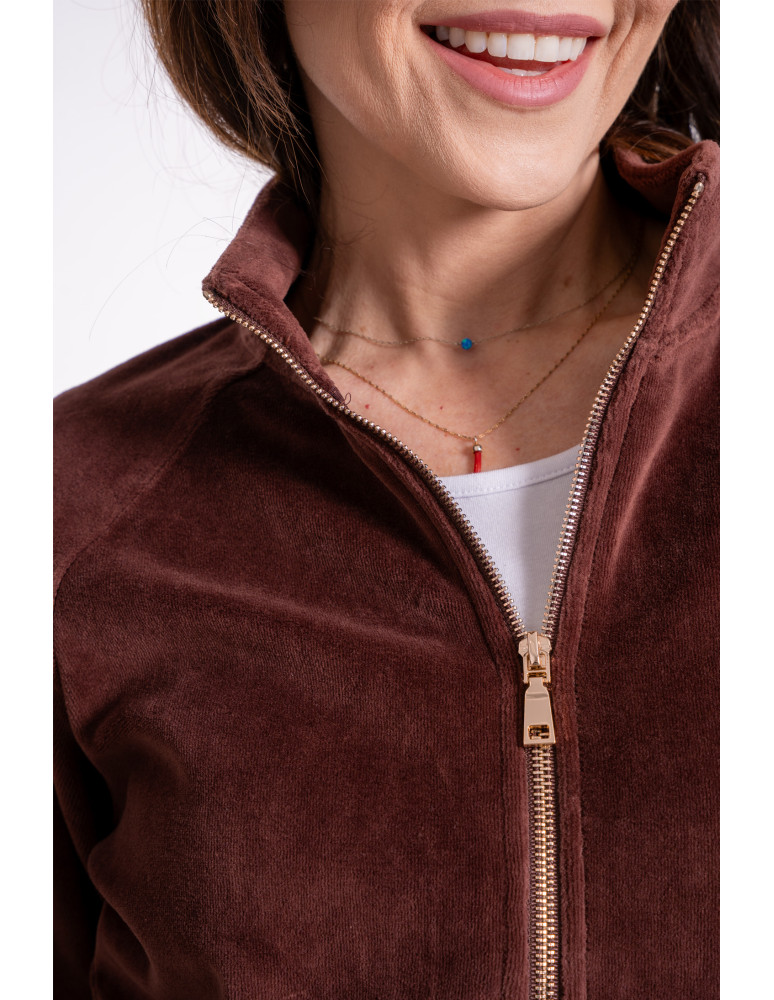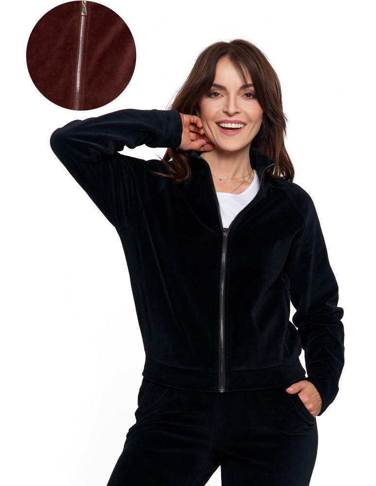 Bluza damska welurowa na zamek z bawełny CZARNY