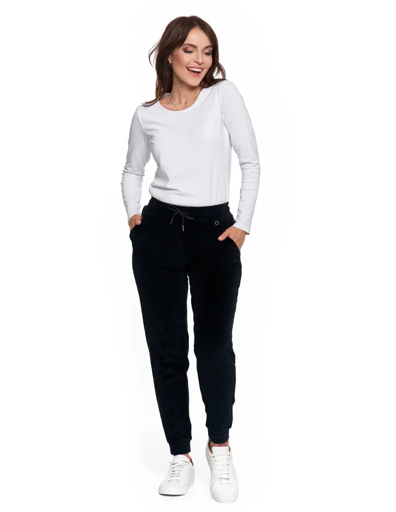 Damskie spodnie dresowe welurowe z bawełny CZARNY