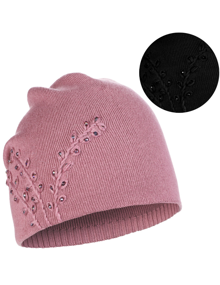 Czapka damska z haftem i połyskującymi zdobieniami CZARNY