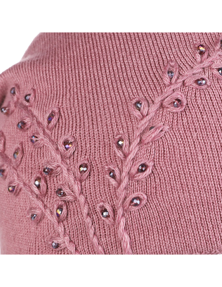 Ta czapka damska to eleganckie połączenie klasyki i subtelnego blasku. Wykonana z miękkiej przędzy z domieszką wełny, doskonale chroni przed chłodem, pozostając przy tym przyjemna w dotyku i komfortowa w noszeniu. Delikatny haft w formie gałązki, ozdobiony błyszczącymi kamyczkami, dodaje jej wyjątkowego uroku i kobiecego charakteru. Elastyczny ściągacz zapewnia idealne dopasowanie do kształtu głowy, a staranne wykończenie gwarantuje trwałość przez wiele sezonów.
