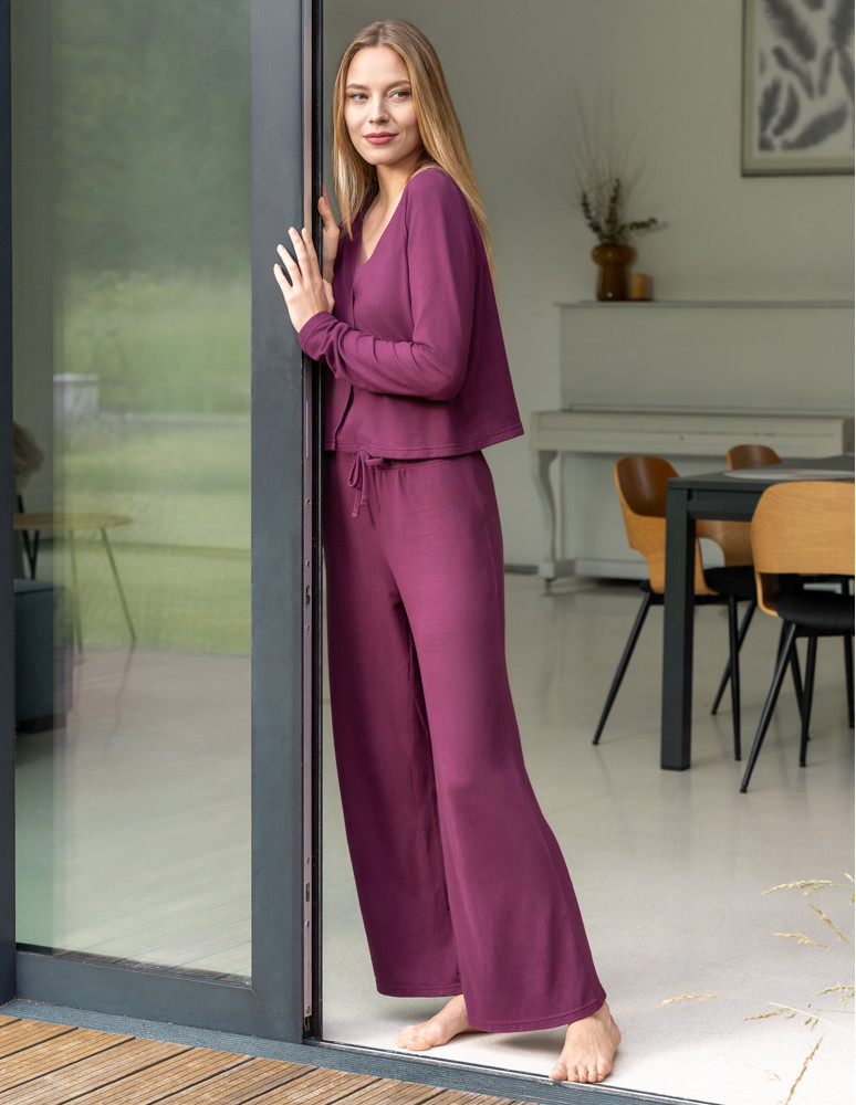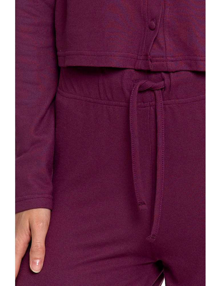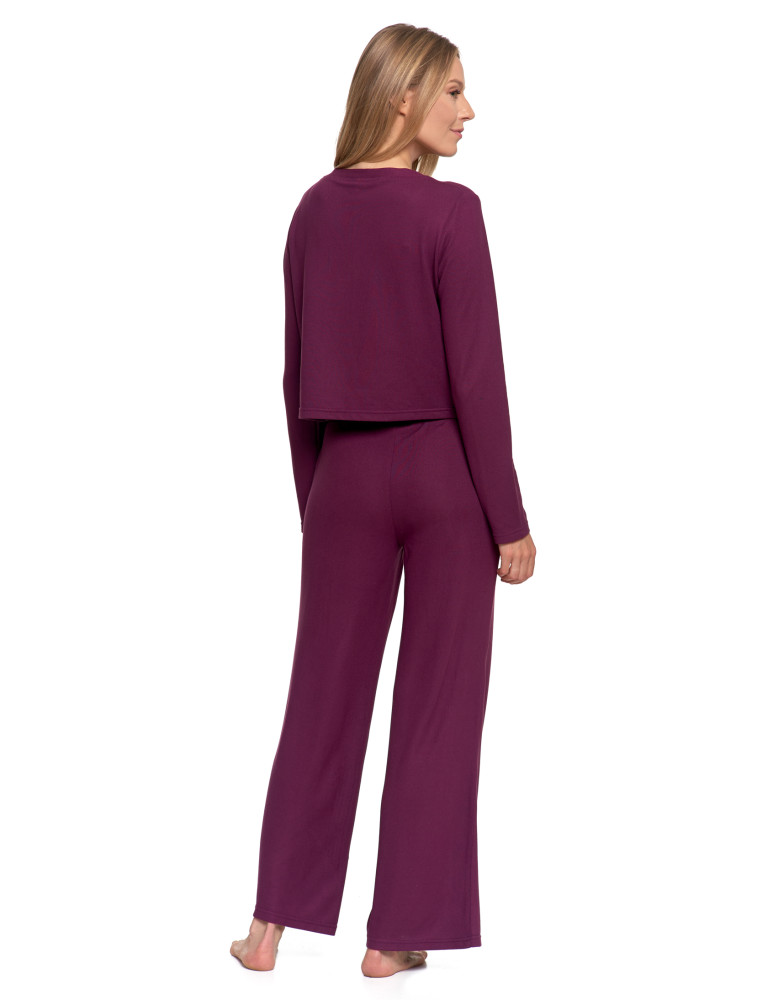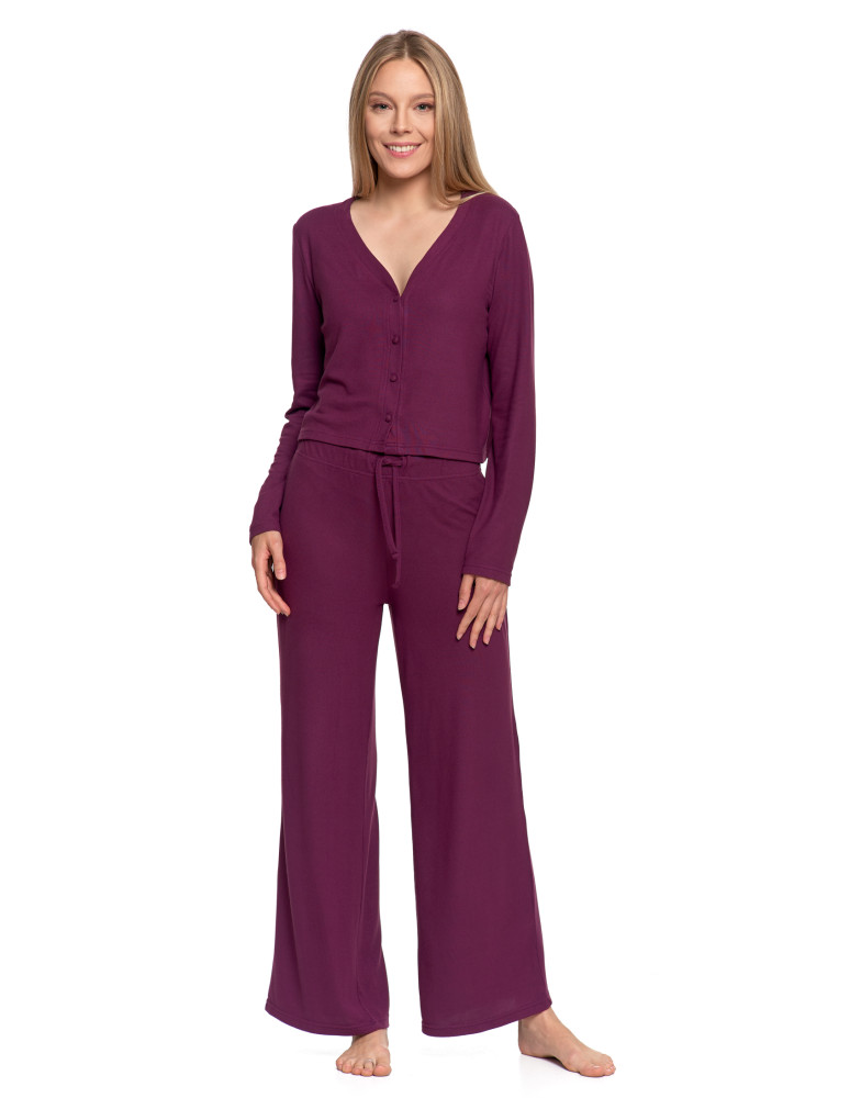 Piżama damska z długim rękawem i szerokimi spodniami FIOLETOWY