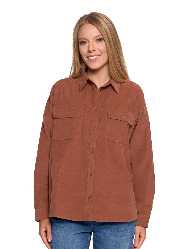Koszula damska sztruksowa luźna bawełniana z kieszeniami BEŻOWY