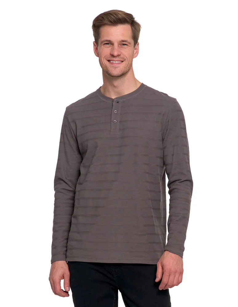 Koszulka męska longsleeve bawełniany z guzikami SZARY
