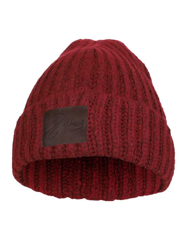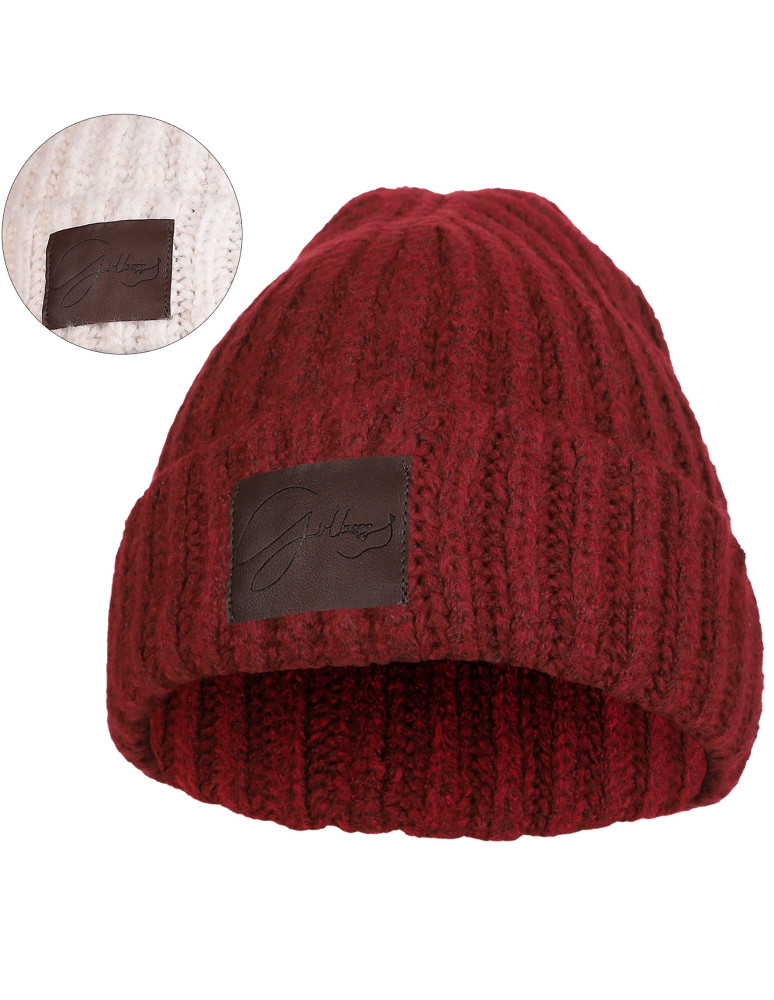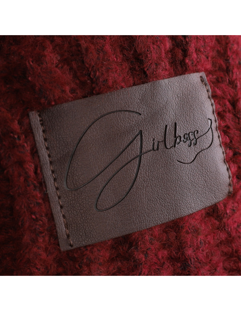 Czapka damska zimowa z wełną i naszywką BORDOWY