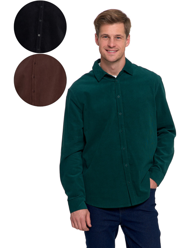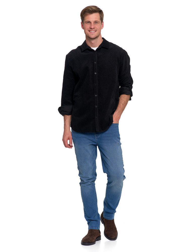 Koszula męska sztruksowa z długim rękawem CZARNY