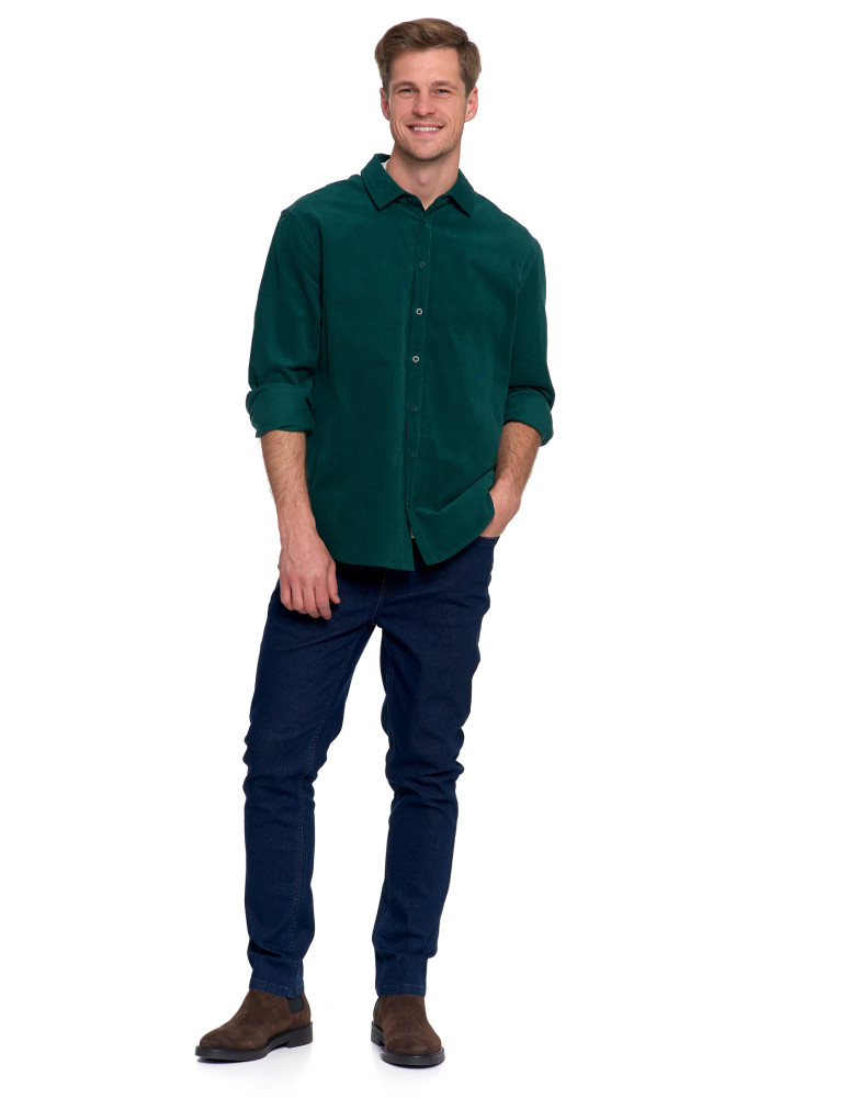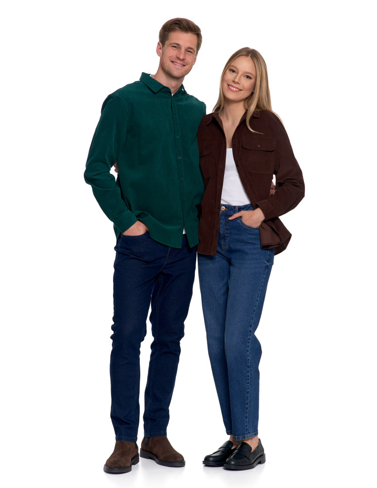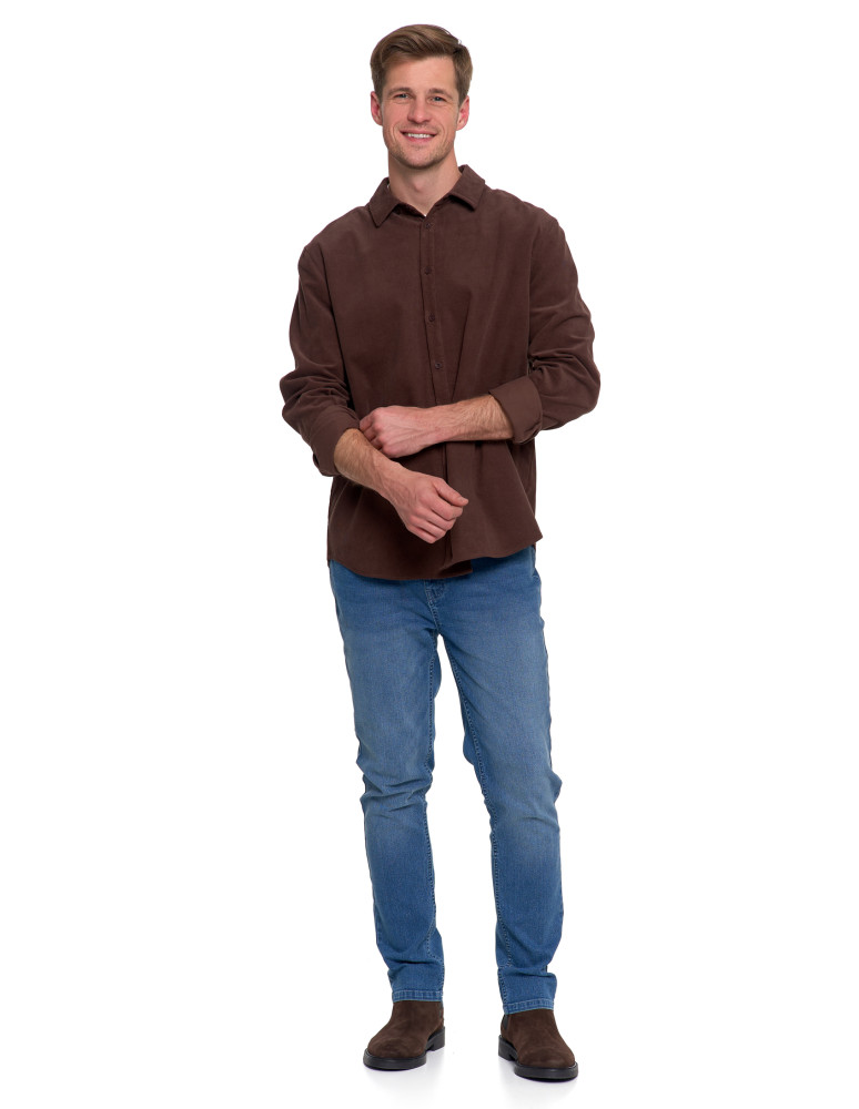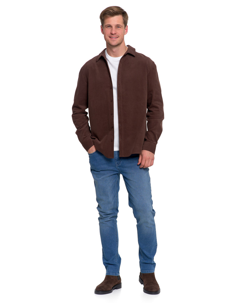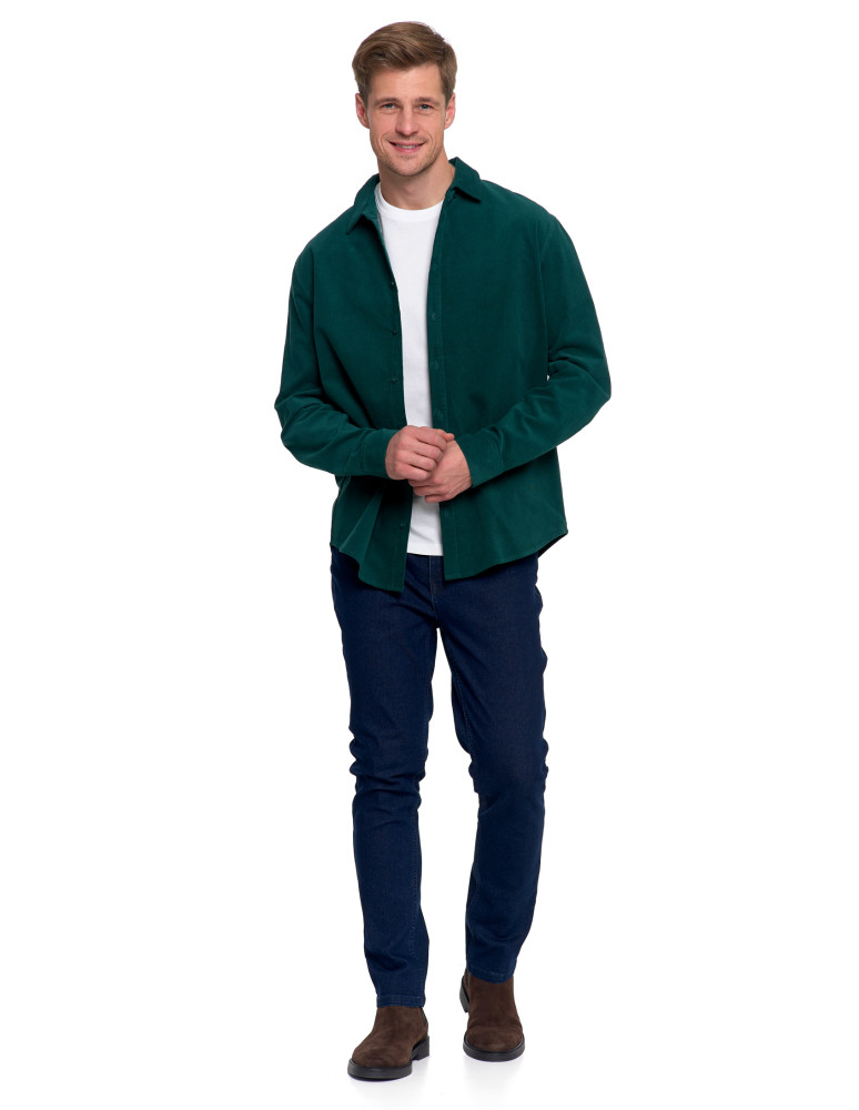 - Sztruksowa faktura nadająca koszuli wyjątkowego charakteru.