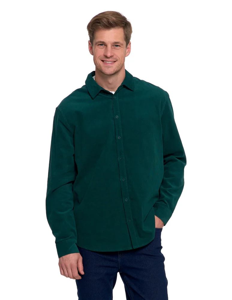 Koszula męska sztruksowa z długim rękawem ZIELONY