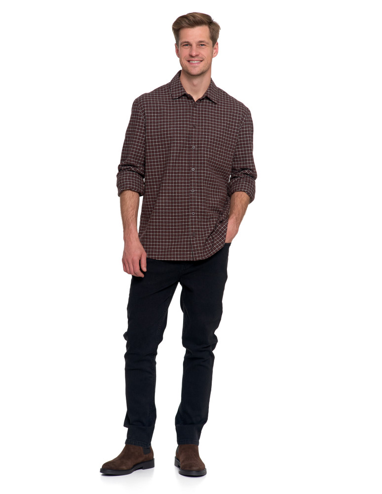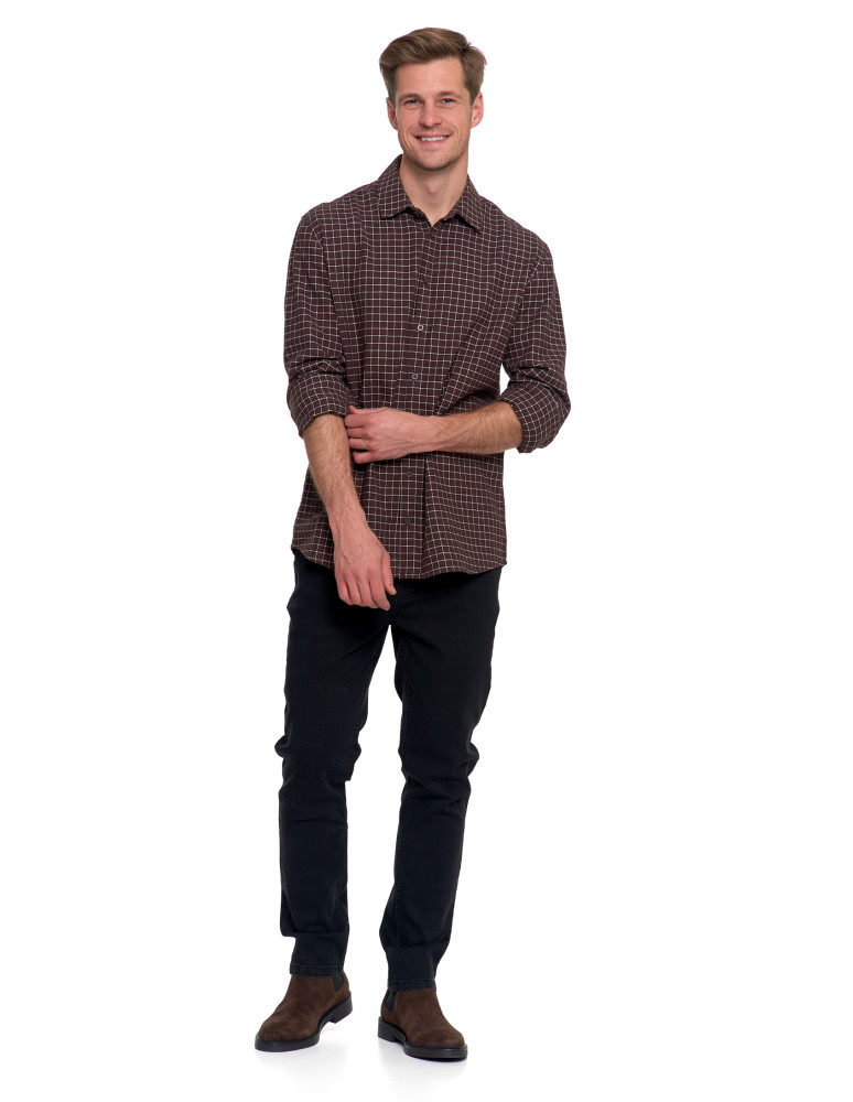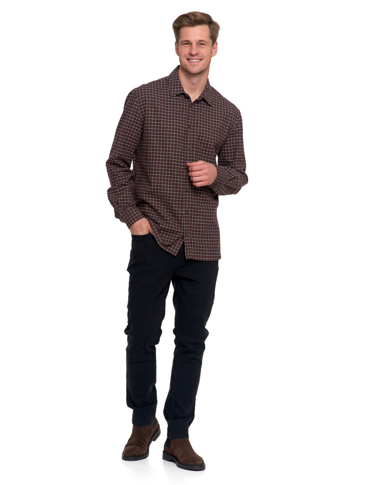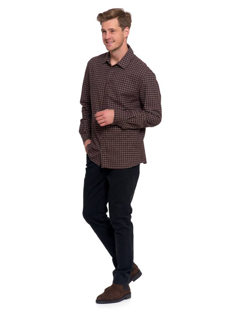 Koszula ma klasyczny krój, który dobrze układa się na sylwetce, a zapięcie na guziki podkreśla jej praktyczny charakter. Długi rękaw i kołnierzyk czynią ją uniwersalnym wyborem – pasuje zarówno do jeansów i butów casualowych, jak i do bardziej dopracowanych zestawów z chinosami.
