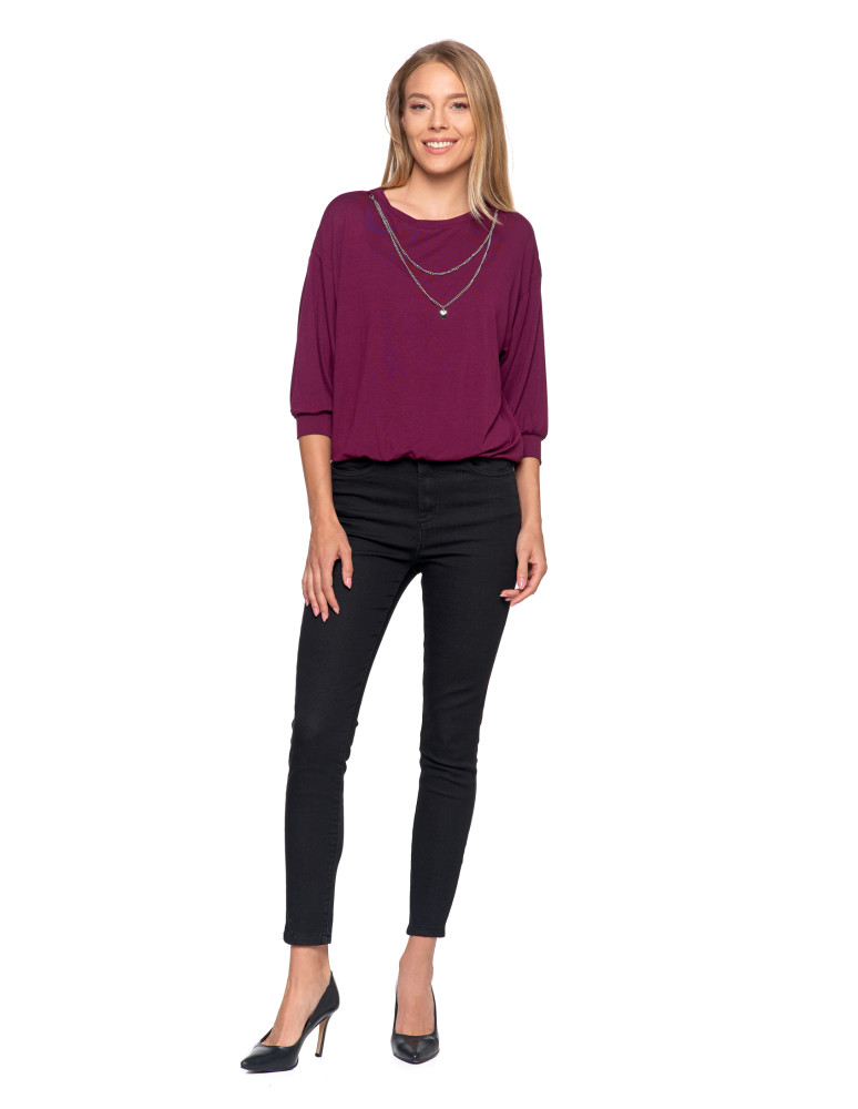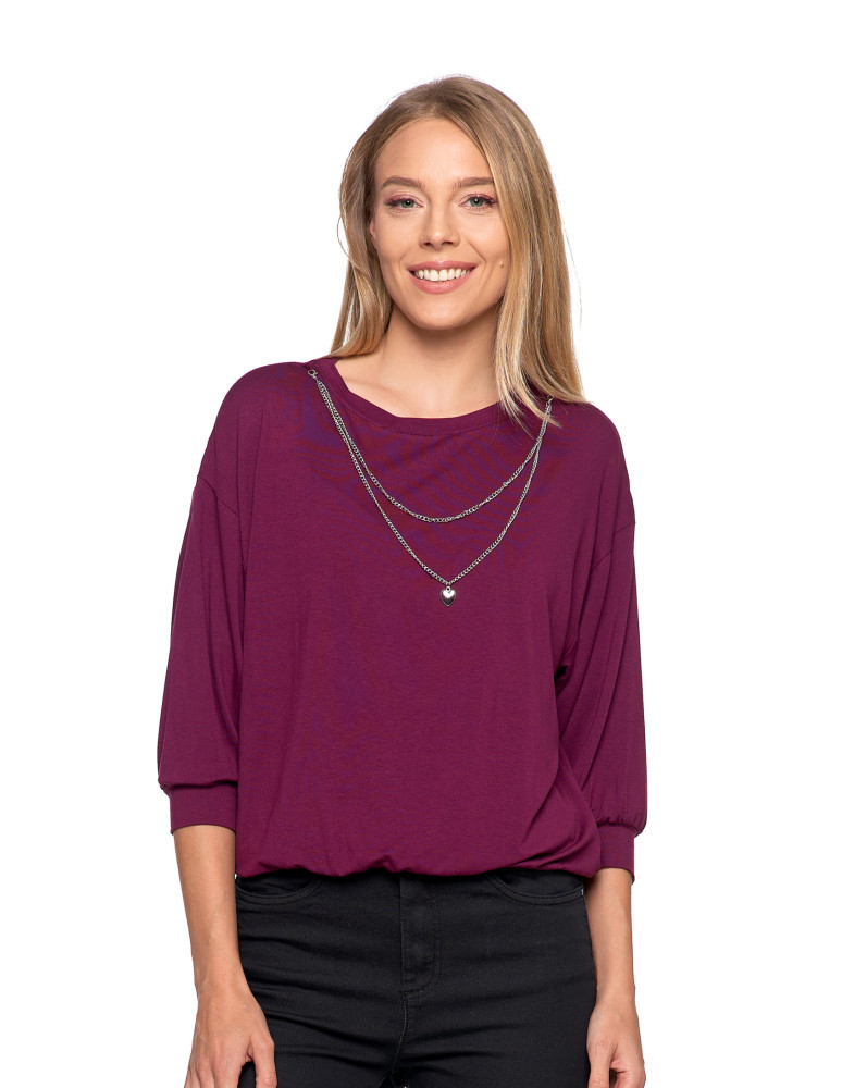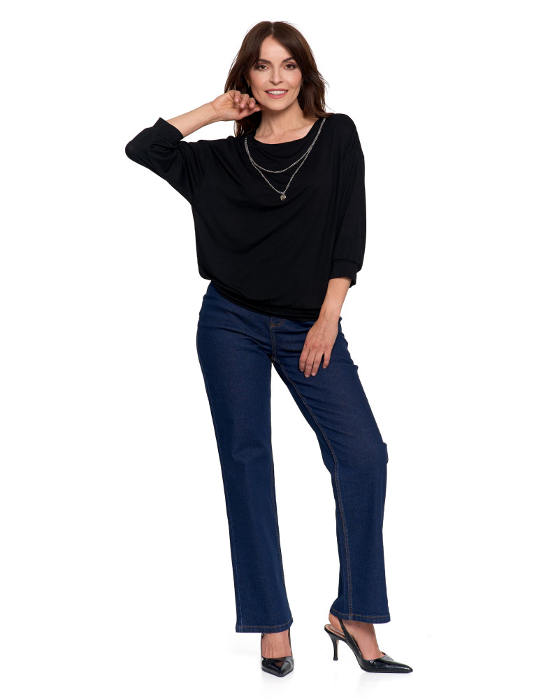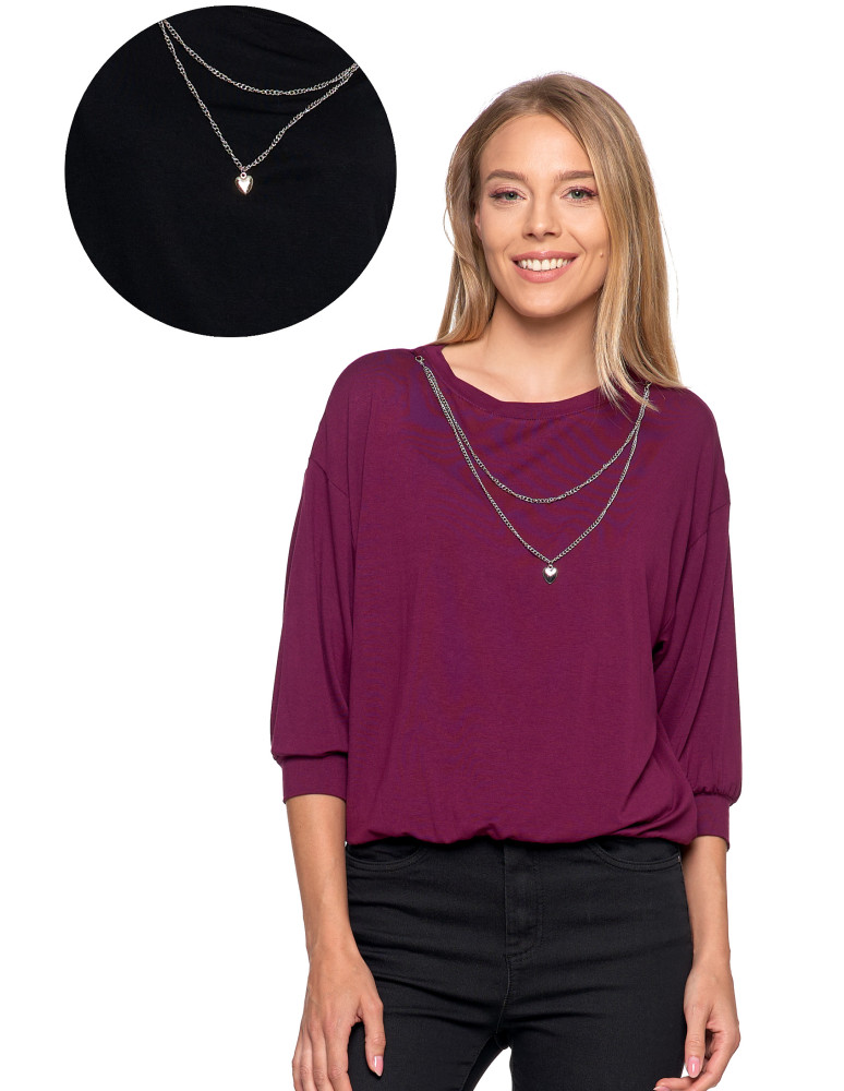 Bluzka damska bombka z łańcuszkiem i rękawem 3/4 CZARNY