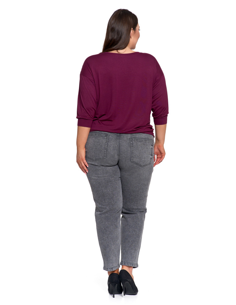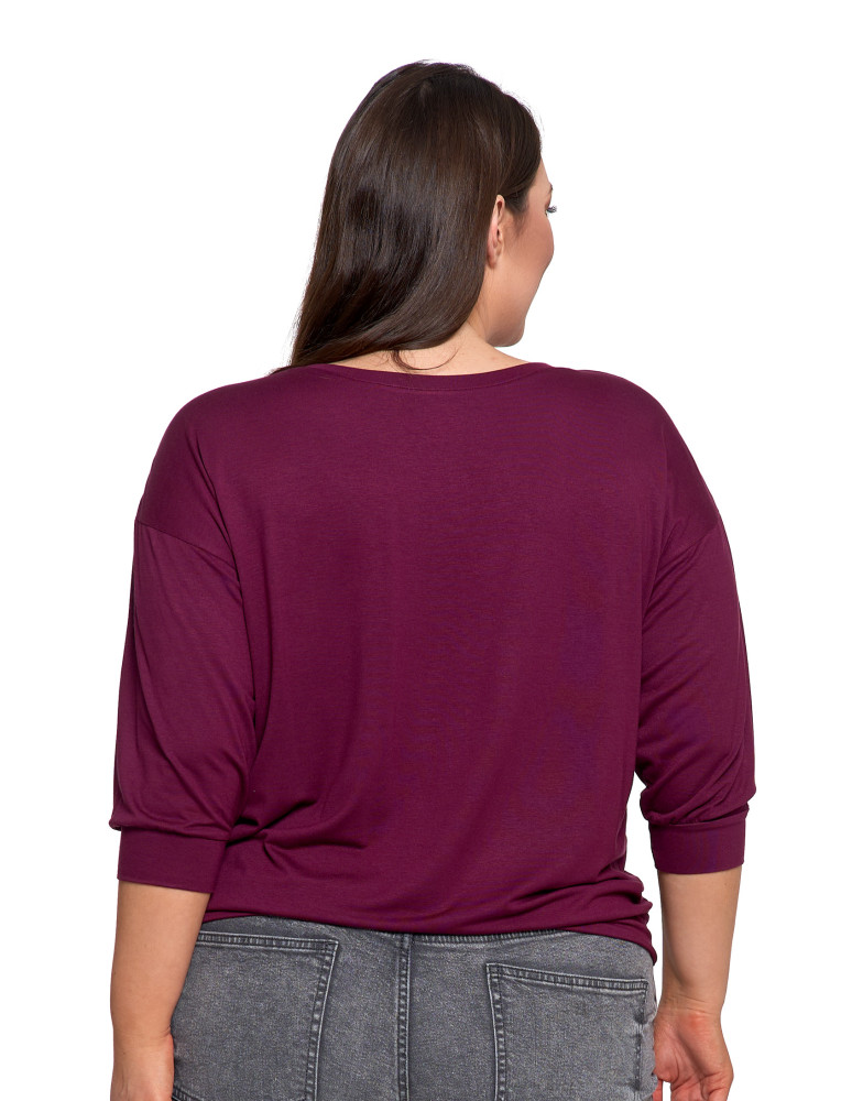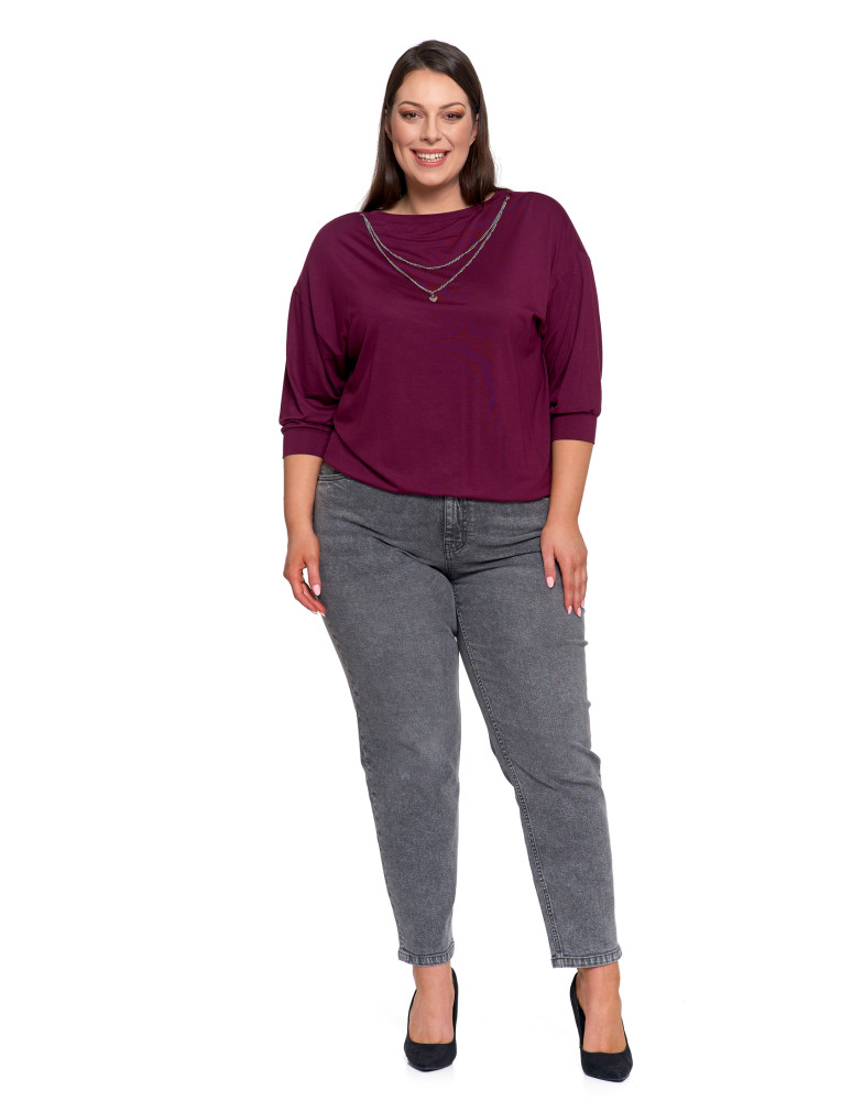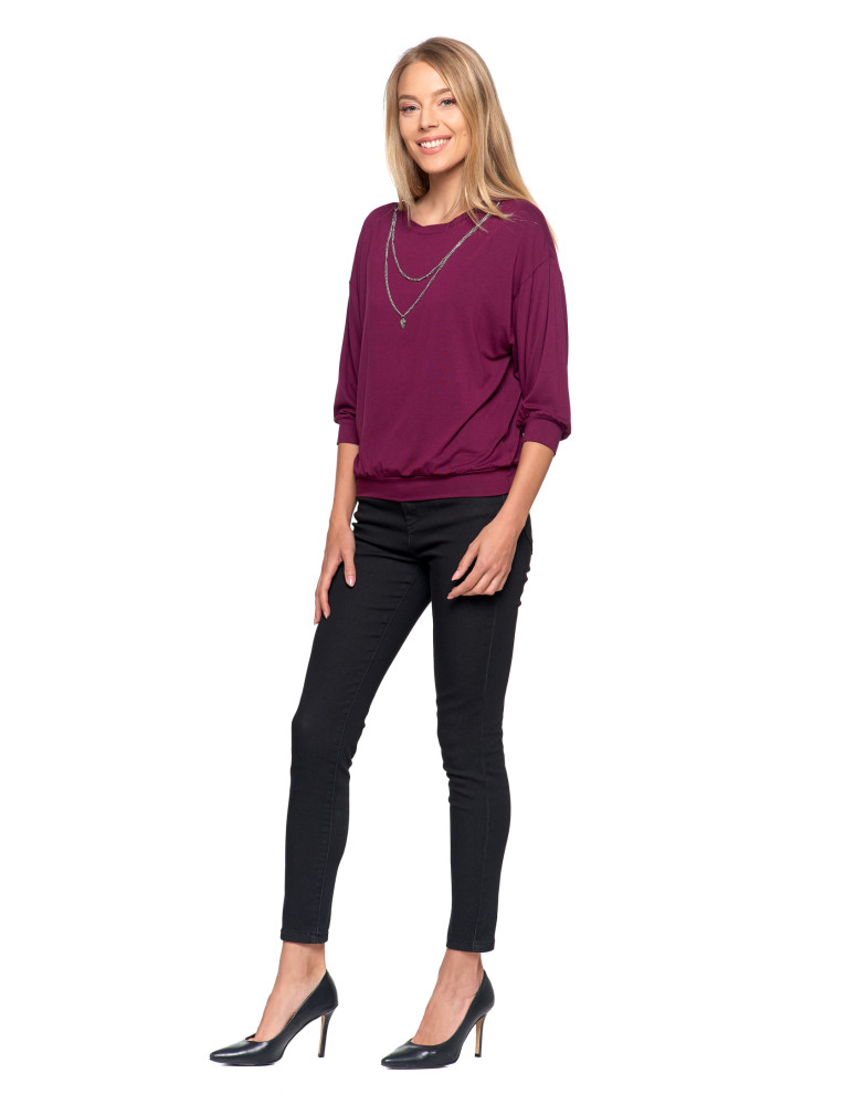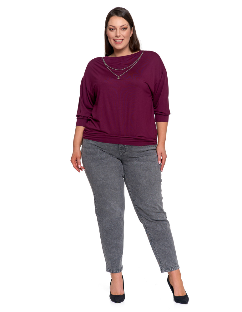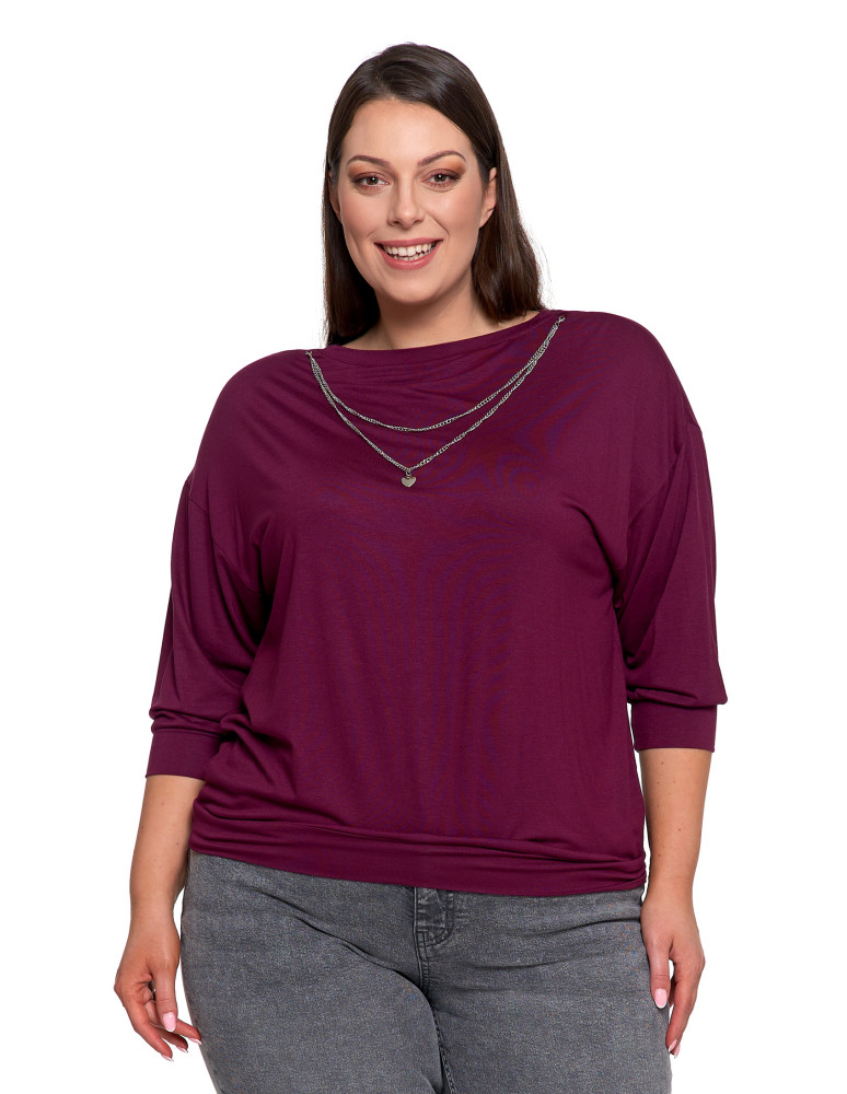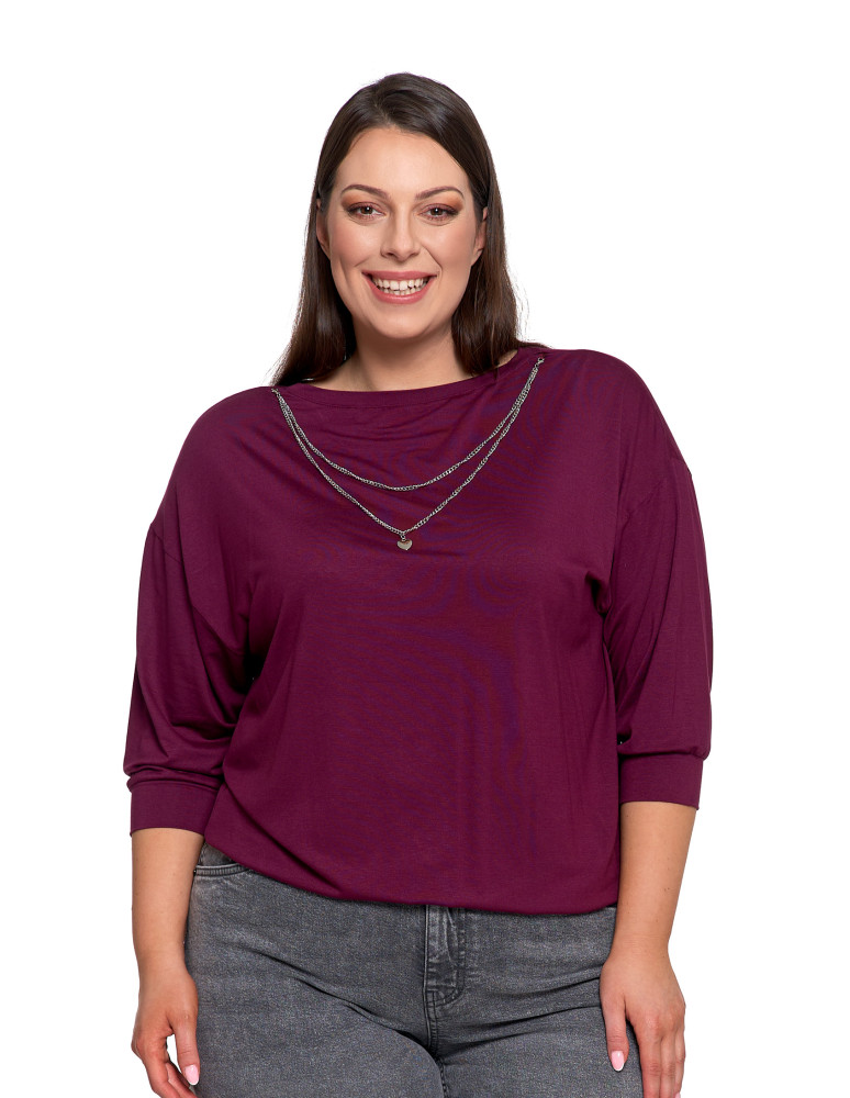 Bluzka damska w fasonie bombki to idealne połączenie wygody i kobiecego akcentu. Luźny krój ze ściągaczem na dole subtelnie podkreśla sylwetkę i zapewnia swobodę ruchów, a rękawy 3/4 zakończone mankietami dodają całości lekkości. Odpinany łańcuszek pełni rolę biżuteryjnej dekoracji – możesz go zostawić jako efektowny detal lub odpiąć, by uzyskać prostszą, klasyczną wersję bluzki. Model został uszyty z miękkiej wiskozy z dodatkiem elastanu, dzięki czemu jest przyjazny dla skóry, elastyczny i niezwykle komfortowy w noszeniu. To uniwersalna propozycja, która sprawdzi się zarówno w codziennych zestawach, jak i w bardziej eleganckich stylizacjach.