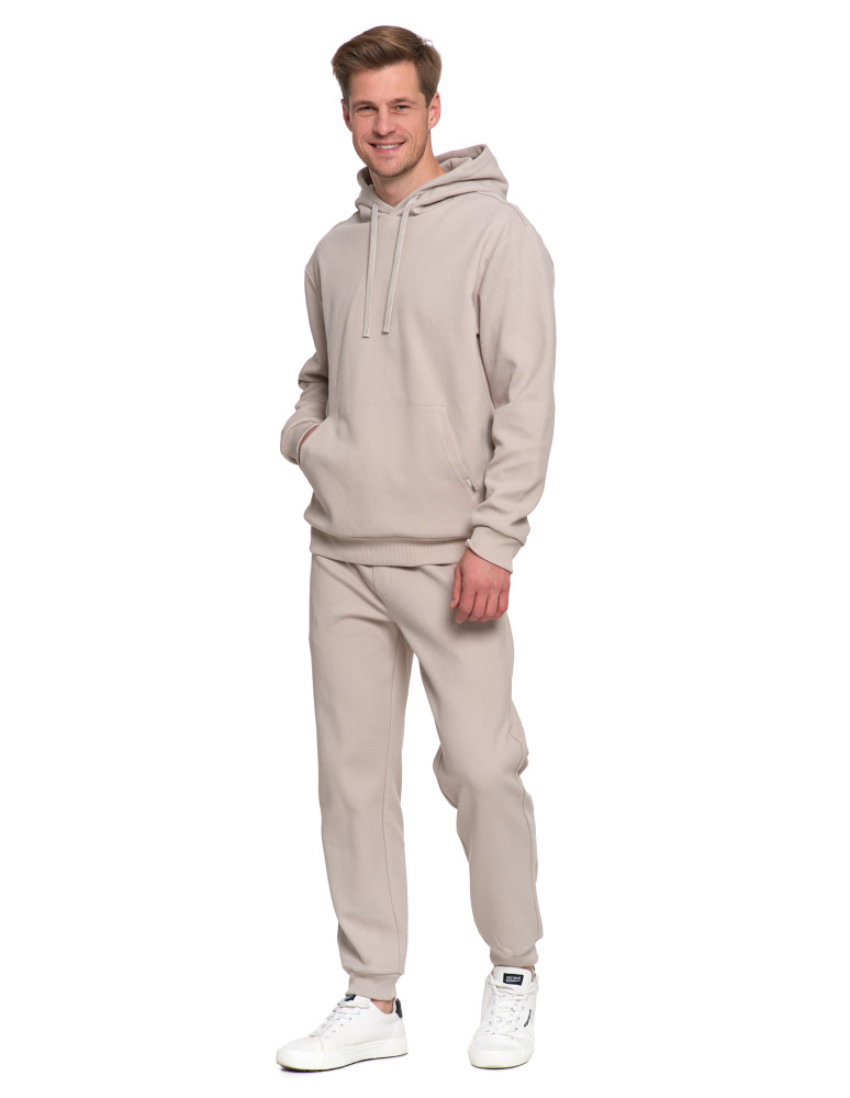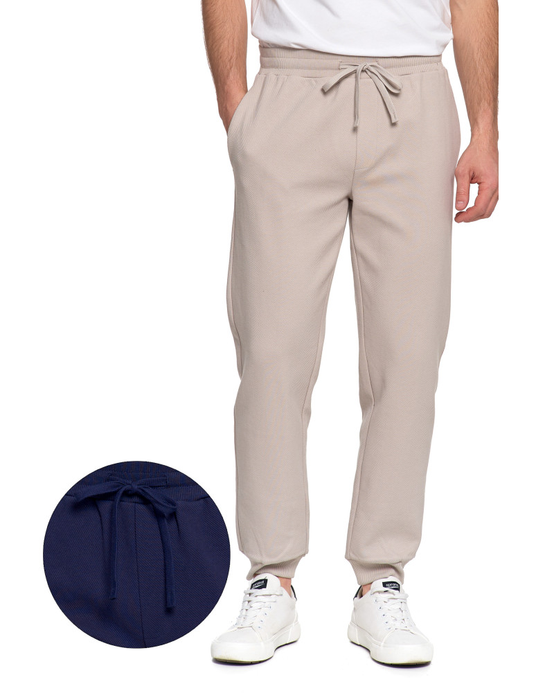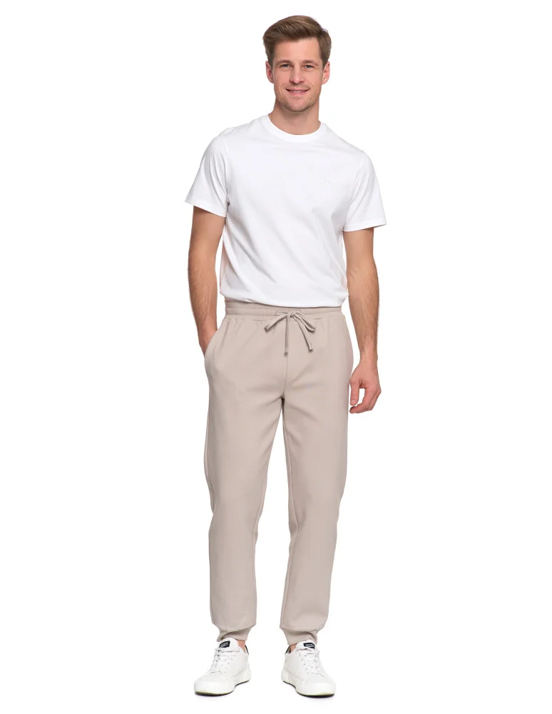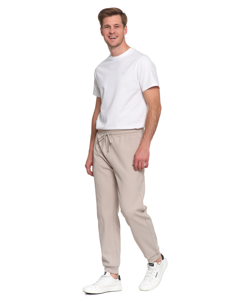 Spodnie męskie dresowe z kieszeniami i ściągaczem w pasie BEŻOWY
