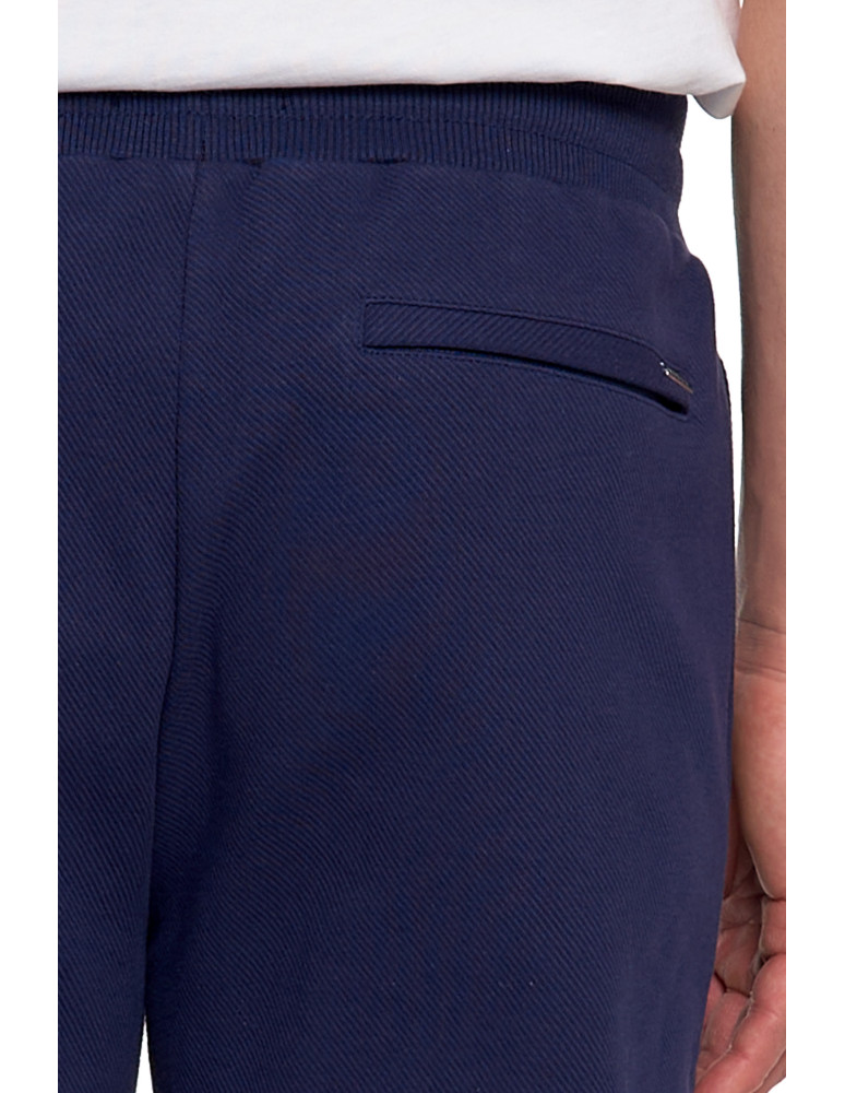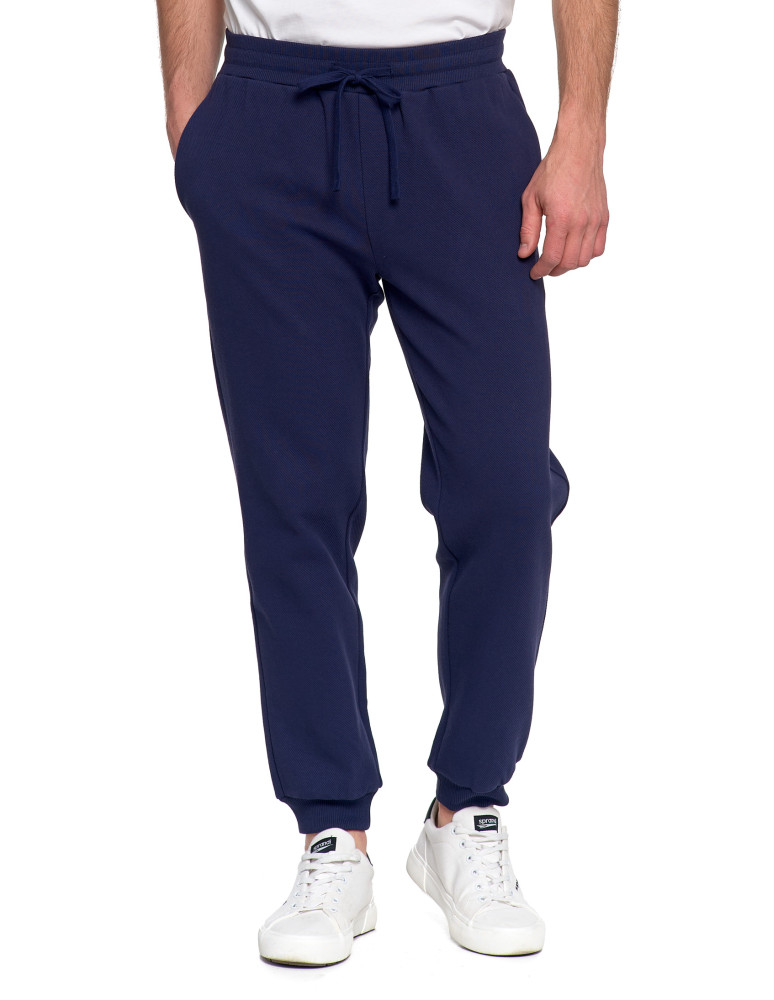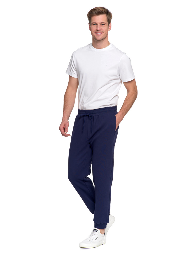 Model wyposażono w elastyczny pas ze sznurkiem do regulacji, dzięki czemu łatwo dopasowuje się do sylwetki. Praktyczne kieszenie boczne oraz kieszeń tylna zwiększają funkcjonalność, a ściągacze przy nogawkach dodają nowoczesnego charakteru i dbają o dobre układanie się spodni.