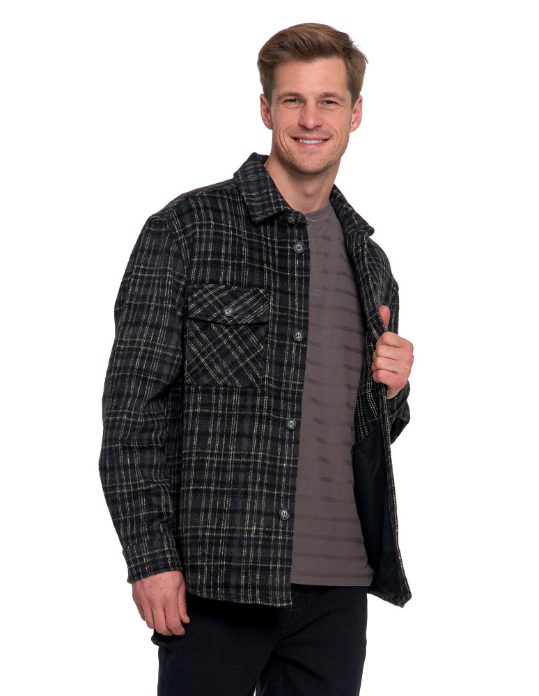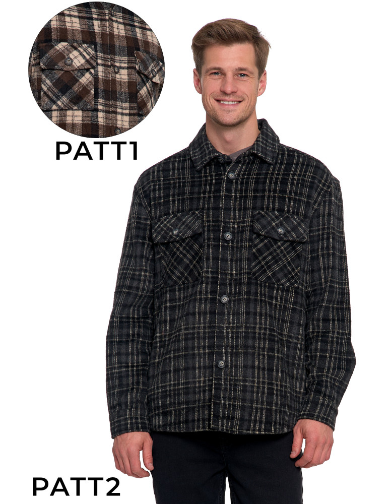 Męska kurtka flanelowa w kratkę z kieszeniami WZÓR 1