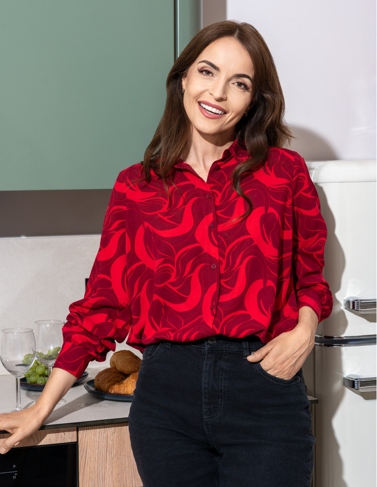 Koszula damska wiskozowa oversize z wydłużonym tyłem CZARNY