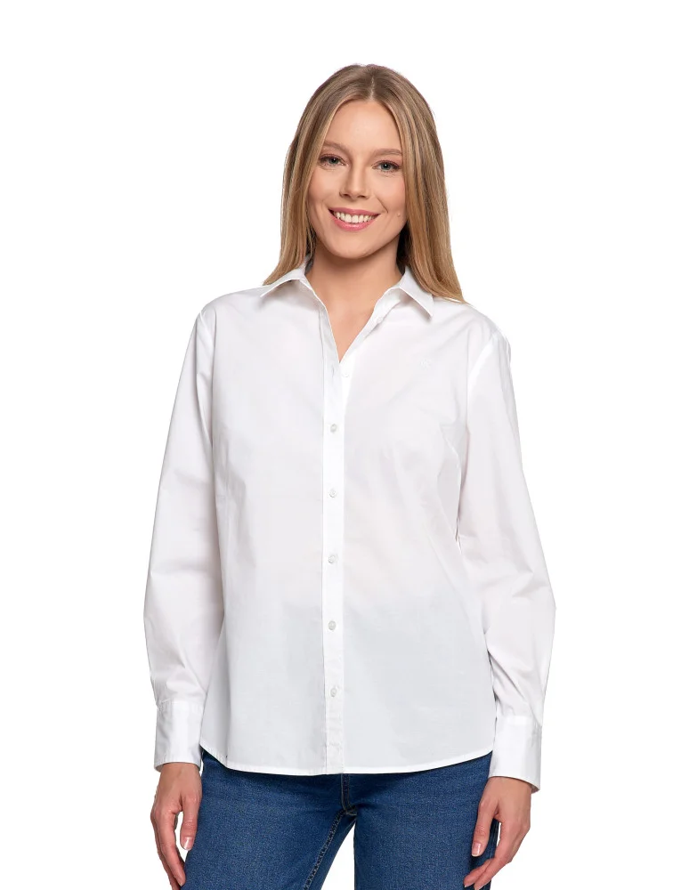 Koszula damska z długim rękawem bawełniana BIAŁY