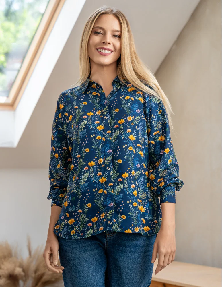Koszula damska z wiskozy z krytą plisą GRANATOWY