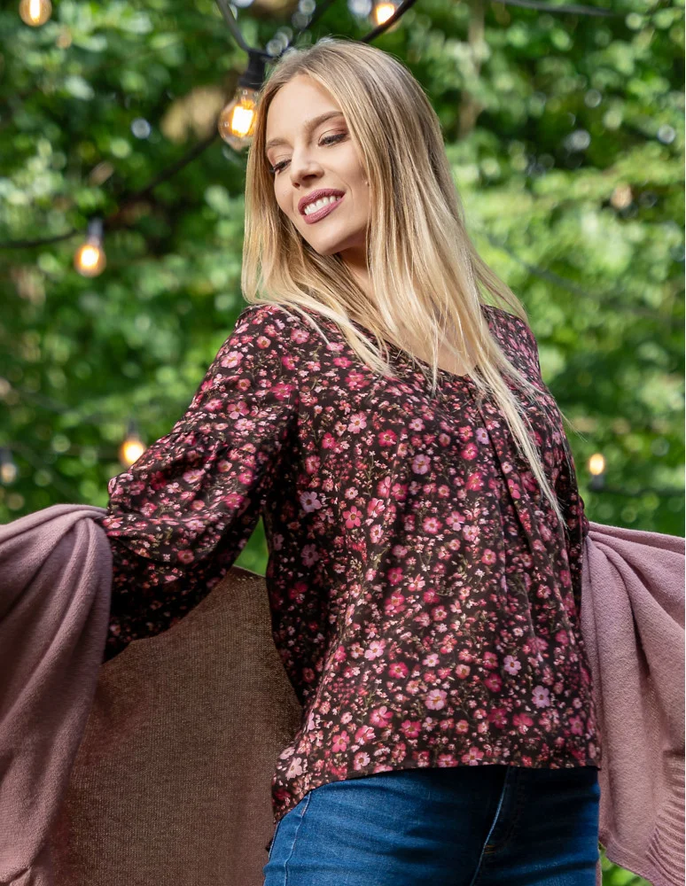 Bluzka damska z bufiastymi rękawami BORDOWY