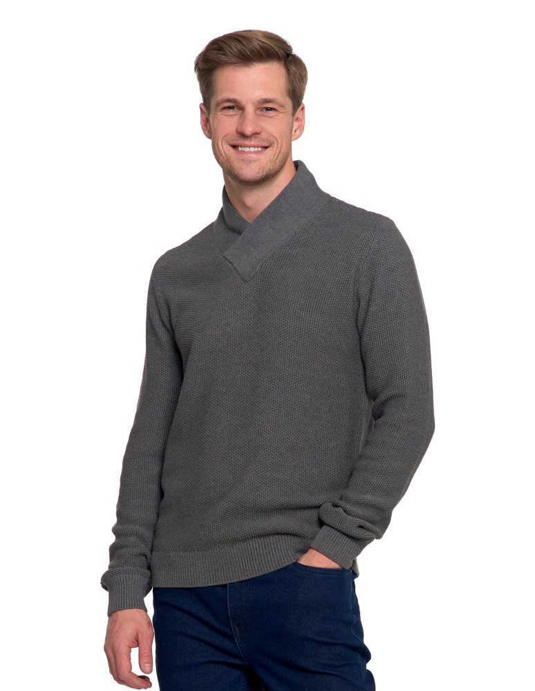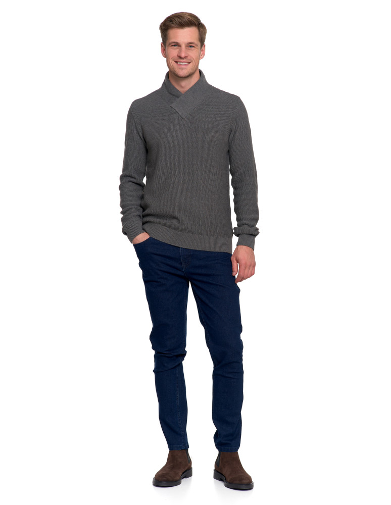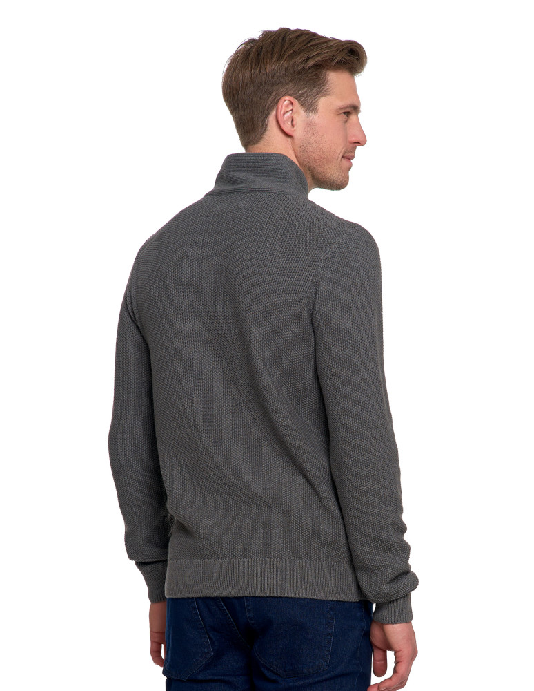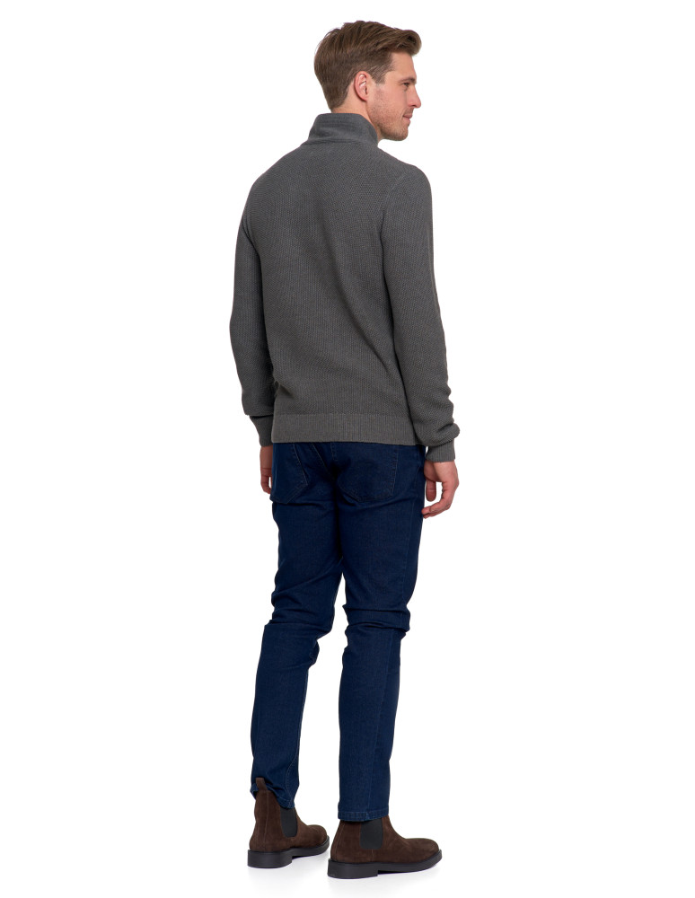 Męski sweter dzianinowy ze stójką i dekoltem w serek SZARY