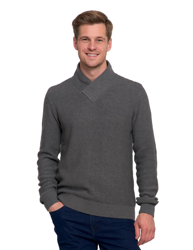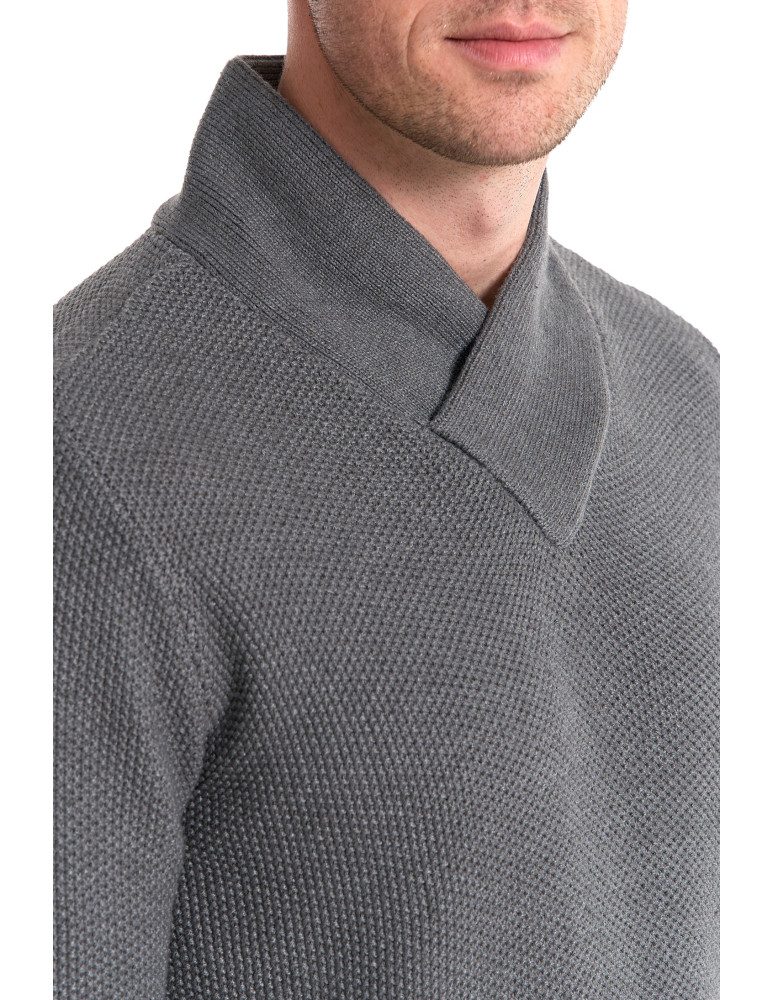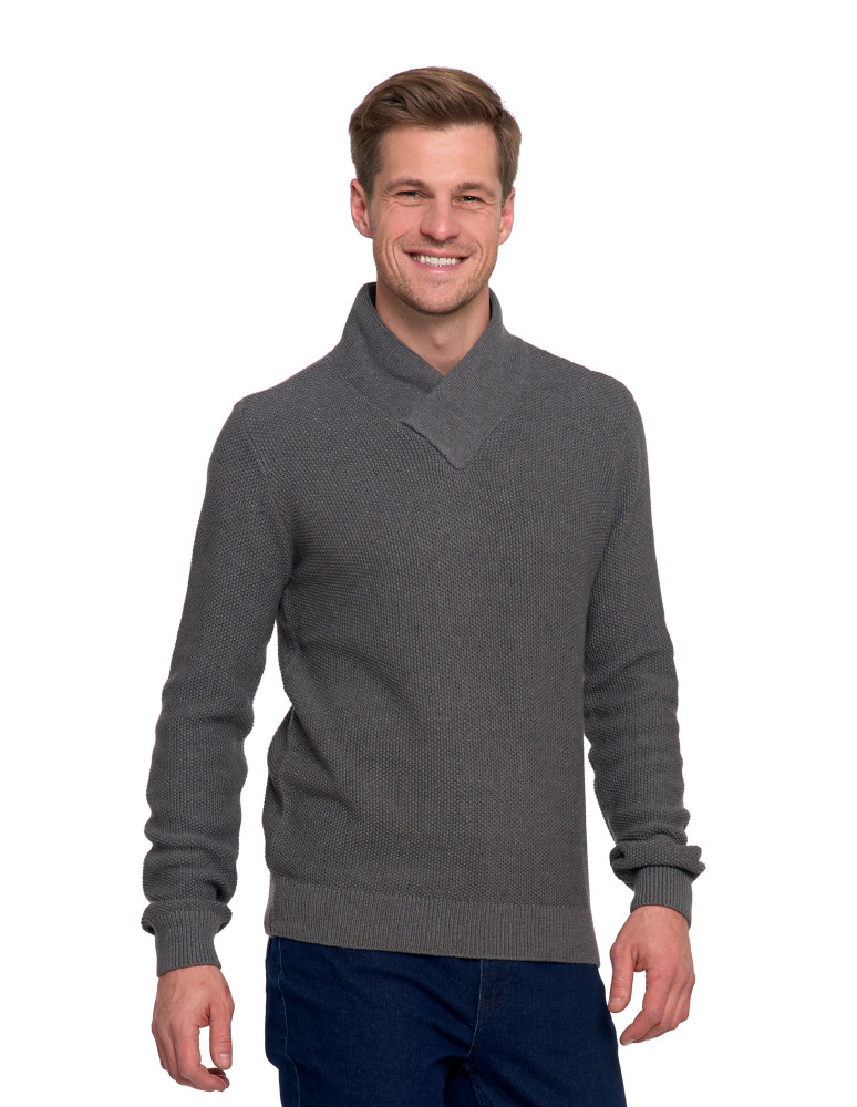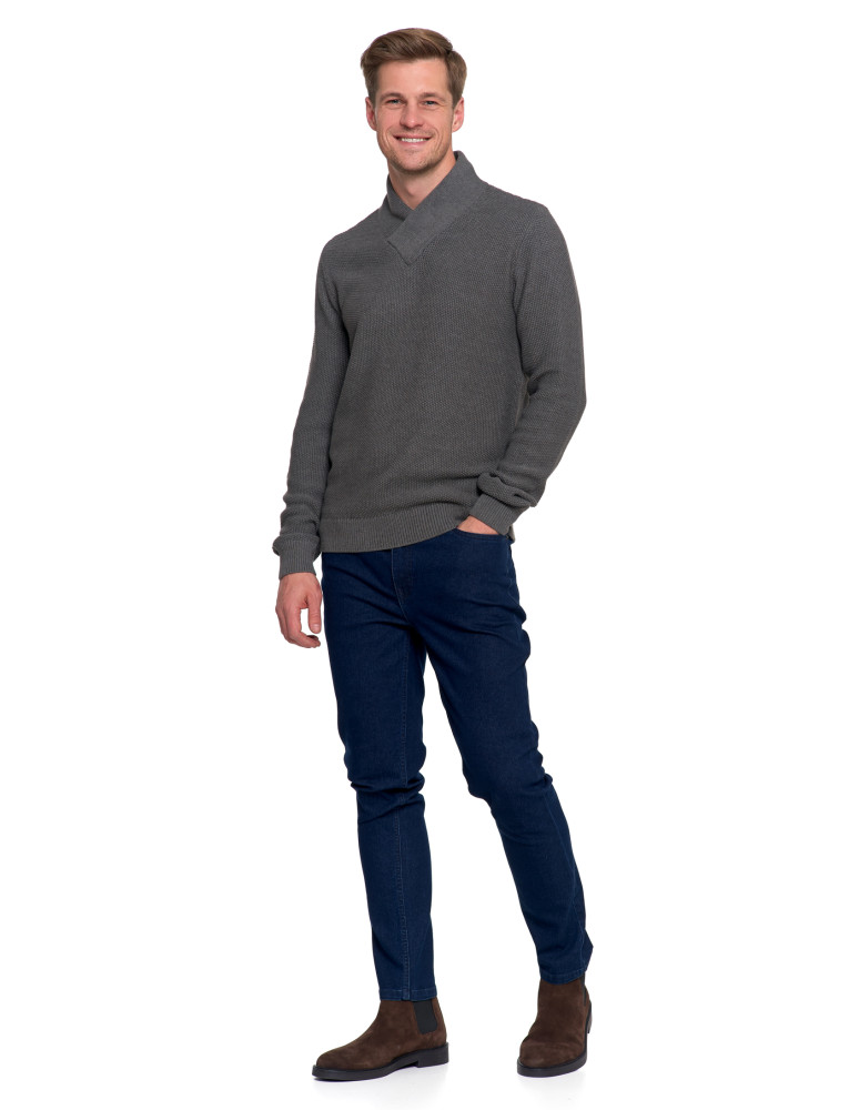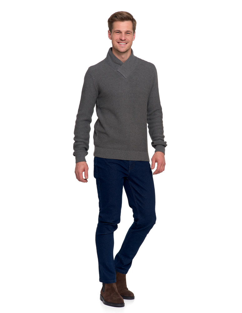 Męski sweter dzianinowy ze stójką i dekoltem w serek SZARY