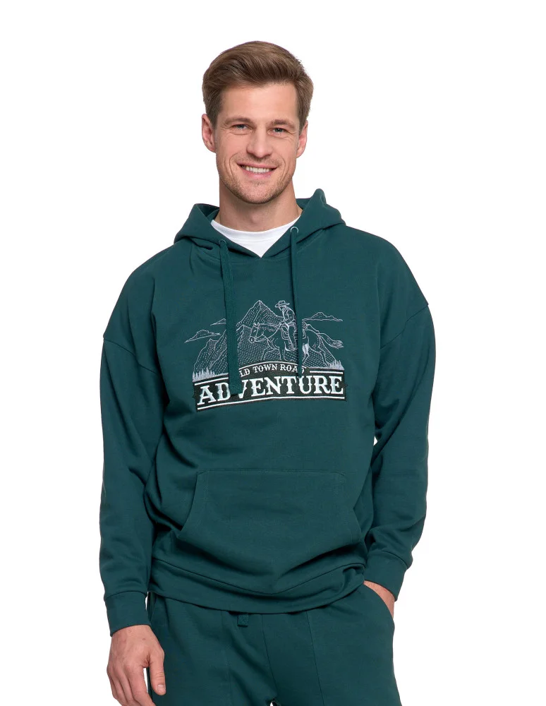 Męska bluza dresowa z kapturem i haftem ocieplana ZIELONY