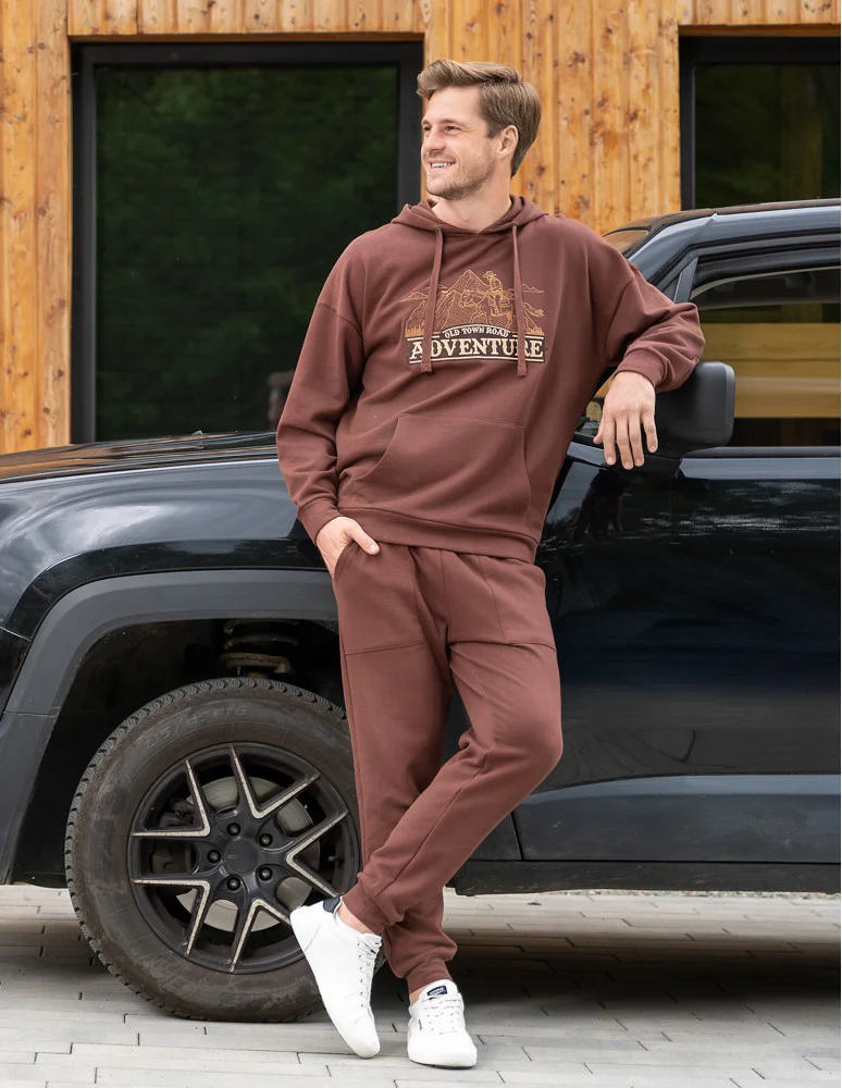 Męskie spodnie dresowe joggery z kieszeniami ocieplane BRĄZOWY
