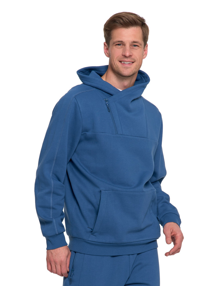 Męska, ocieplana bluza idealna na chłodniejsze dni, łącząca sportowy styl z funkcjonalnym komfortem. Wykonana z miękkiej i grubej dzianiny bawełnianej z domieszką, zapewnia doskonałe właściwości termiczne oraz jest przyjemna w dotyku. Klasyczny fason został wzbogacony o unikalne detale, które nadają bluzie nowoczesny, miejski charakter.