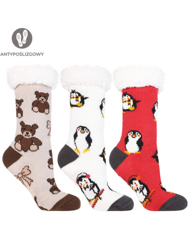 Wygodne, ciepłe i niezwykle urocze – damskie bambosze z zimowymi motywami idealne na domowe wieczory. Wyjątkowo miękka dzianina z wewnętrznym futerkiem otula stopy ciepłem, a antypoślizgowa podeszwa z ABS zapewnia stabilność na każdej powierzchni – także na śliskich panelach czy kafelkach.