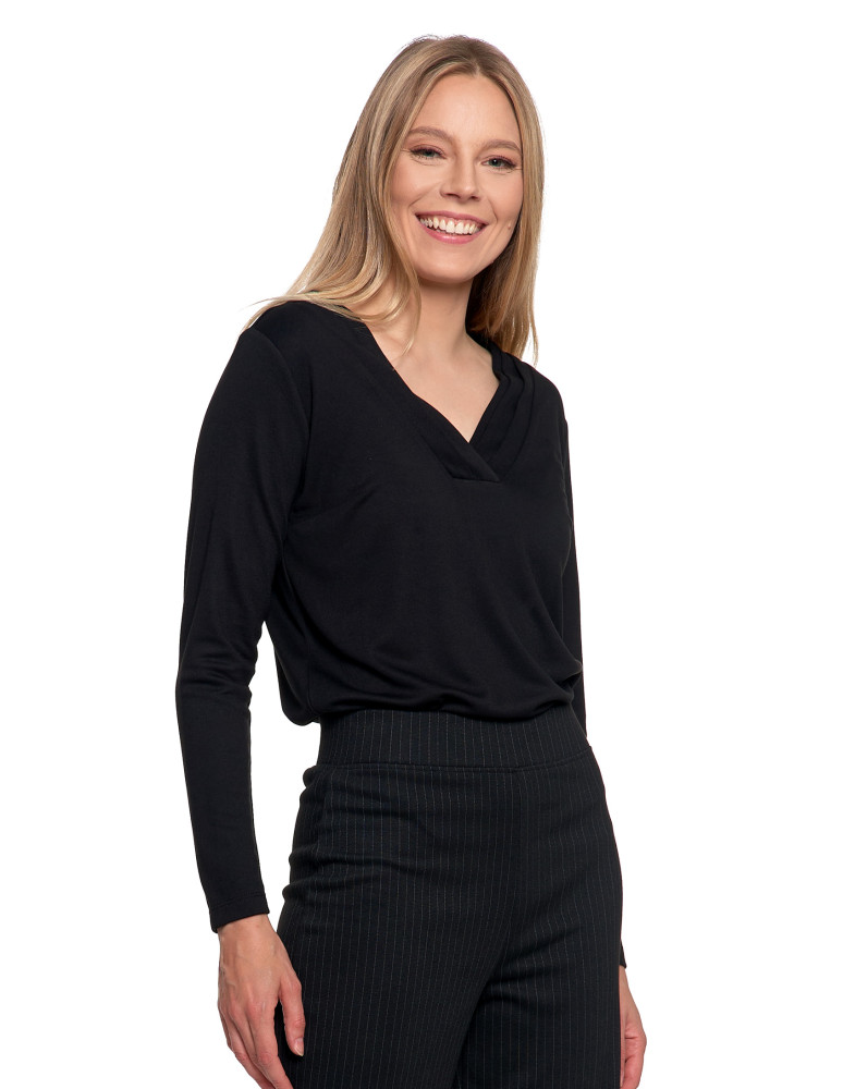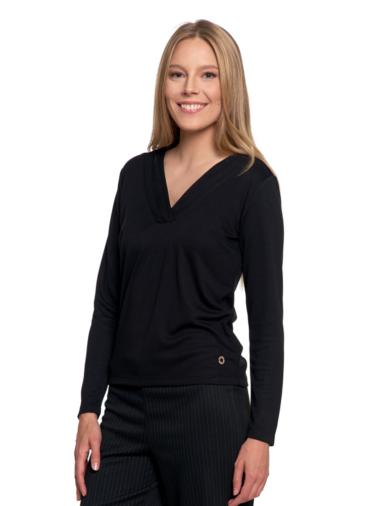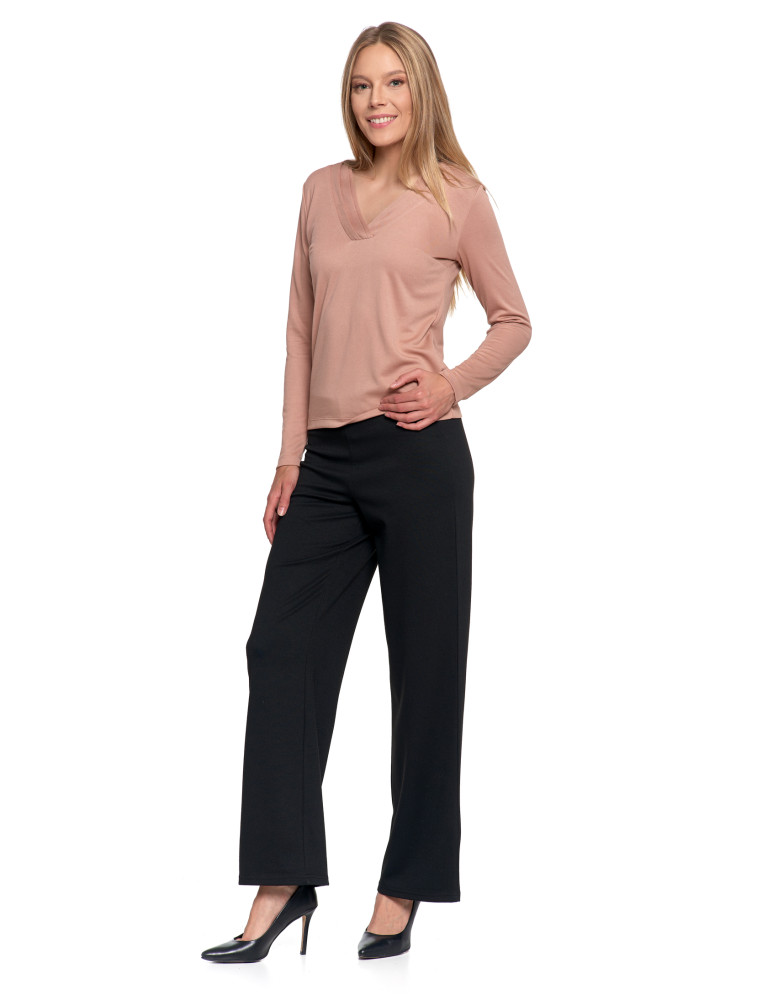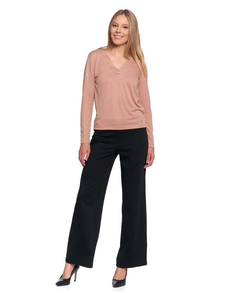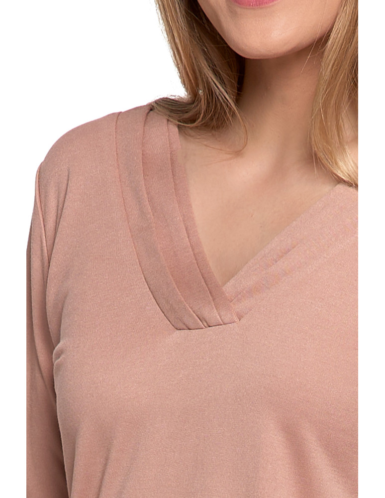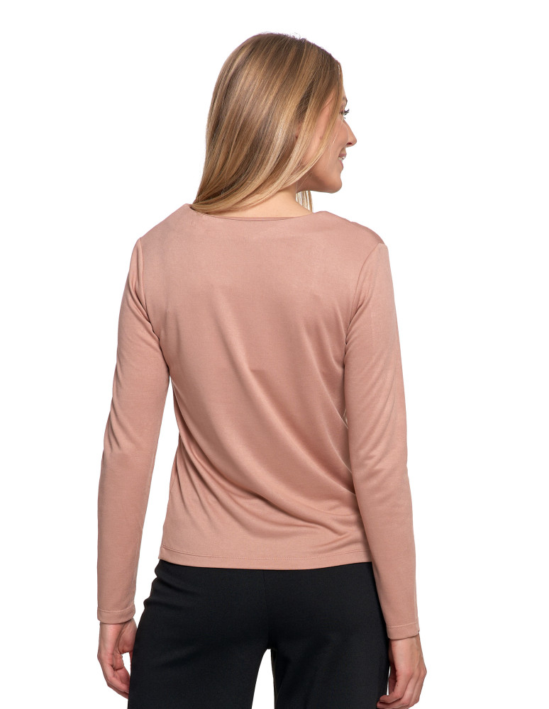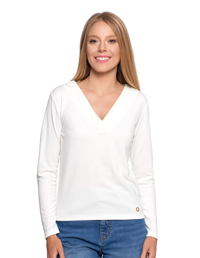 Bluzka damska z długim rękawem z ozdobnym dekoltem V KREMOWY