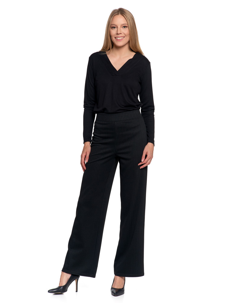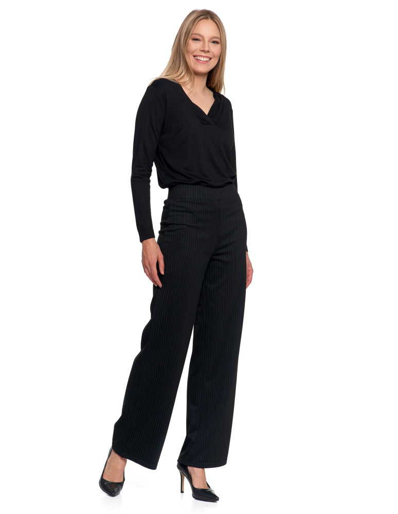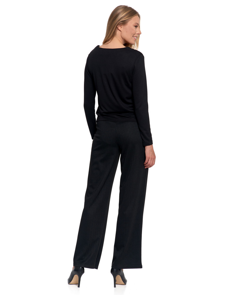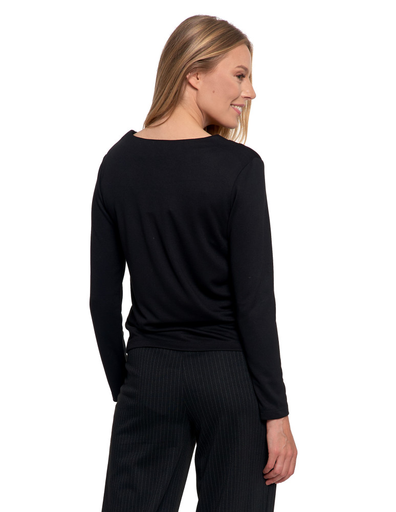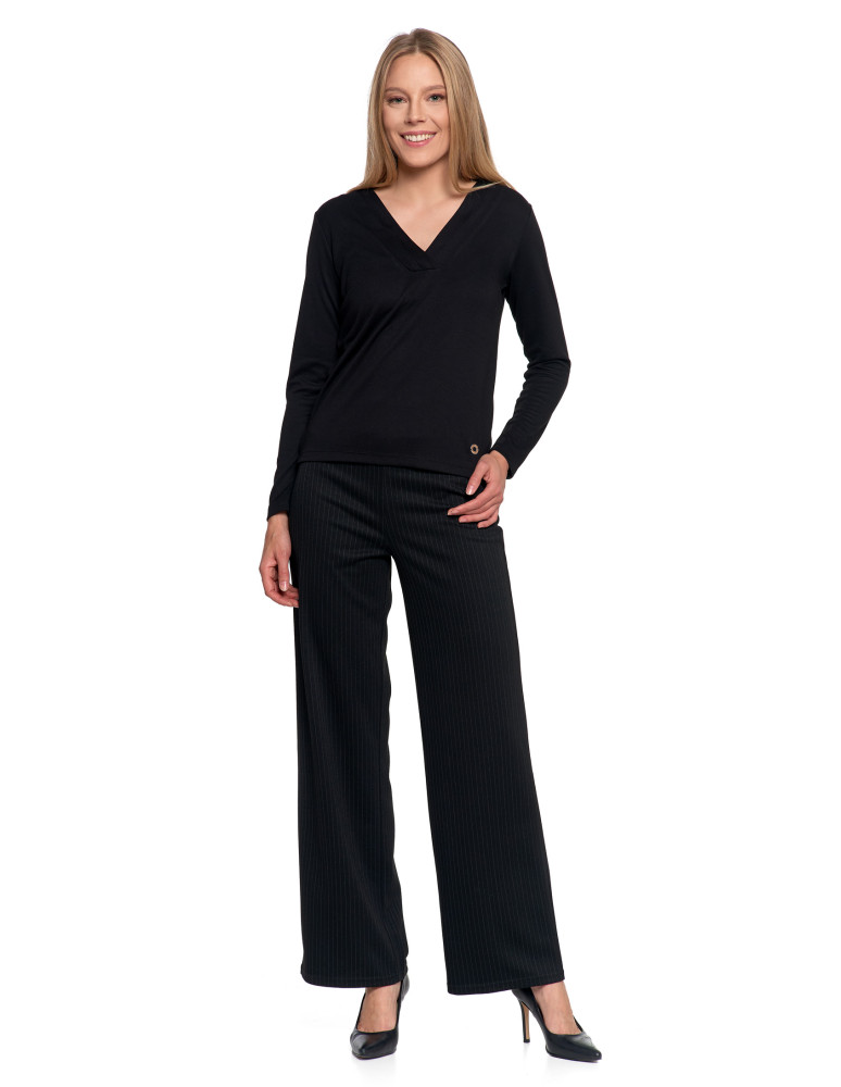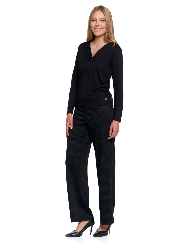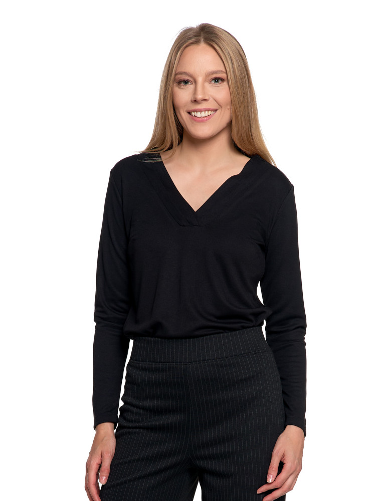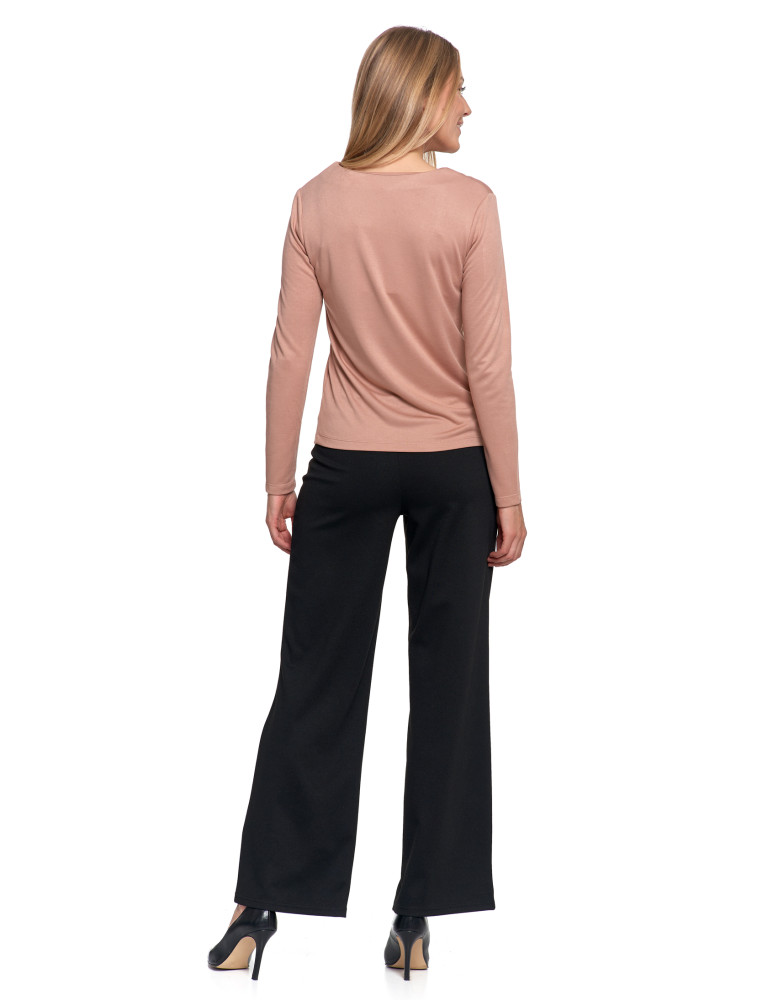 Bluzka damska z długim rękawem z ozdobnym dekoltem V KREMOWY