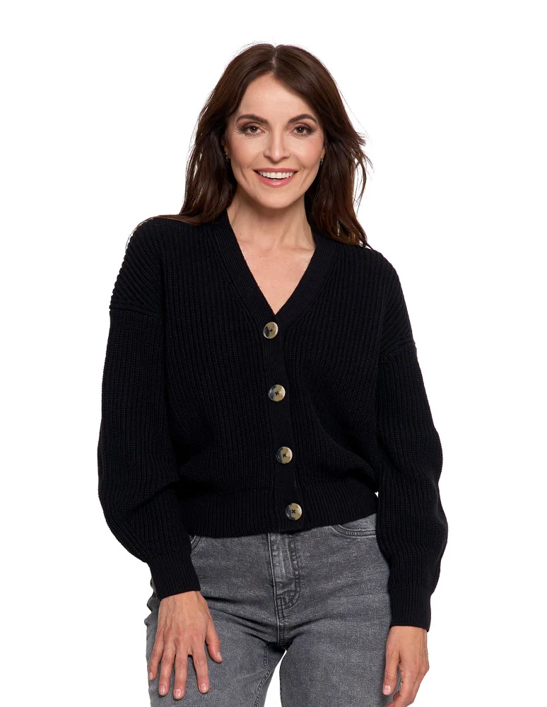 Damski sweter kardigan z szerokimi rękawami CZARNY