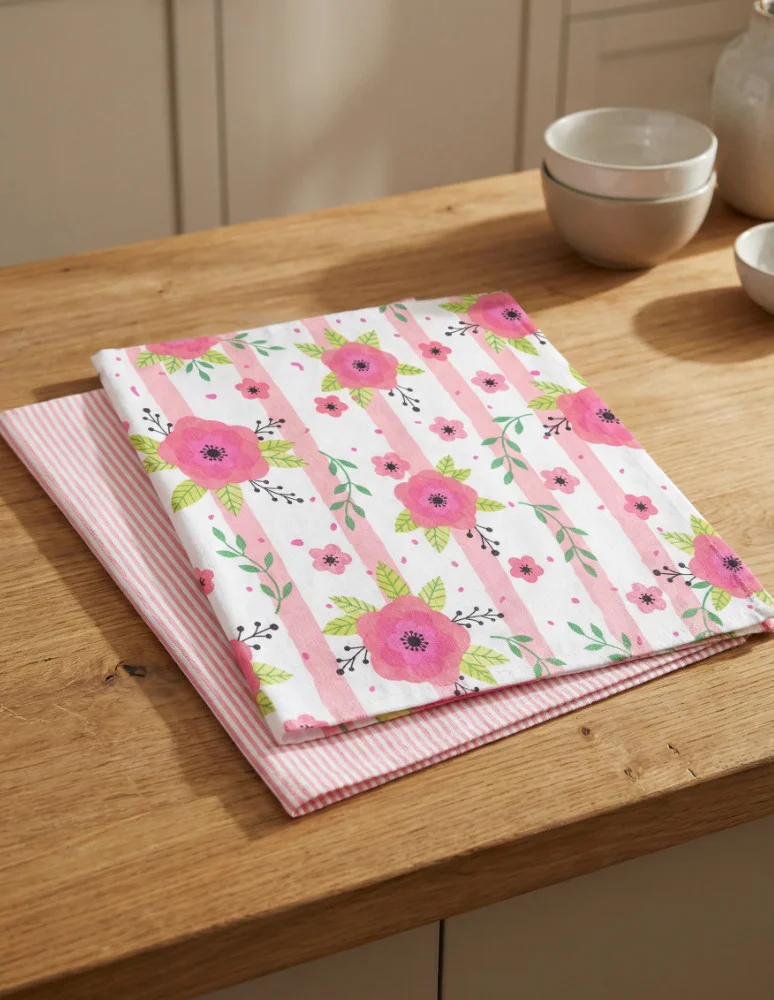 Zestaw trzech bawełnianych ręczników kuchennych w ozdobnym koszyku prezentowym to doskonały pomysł na upominek, który zachwyci wyglądem i przyda się w każdej kuchni.