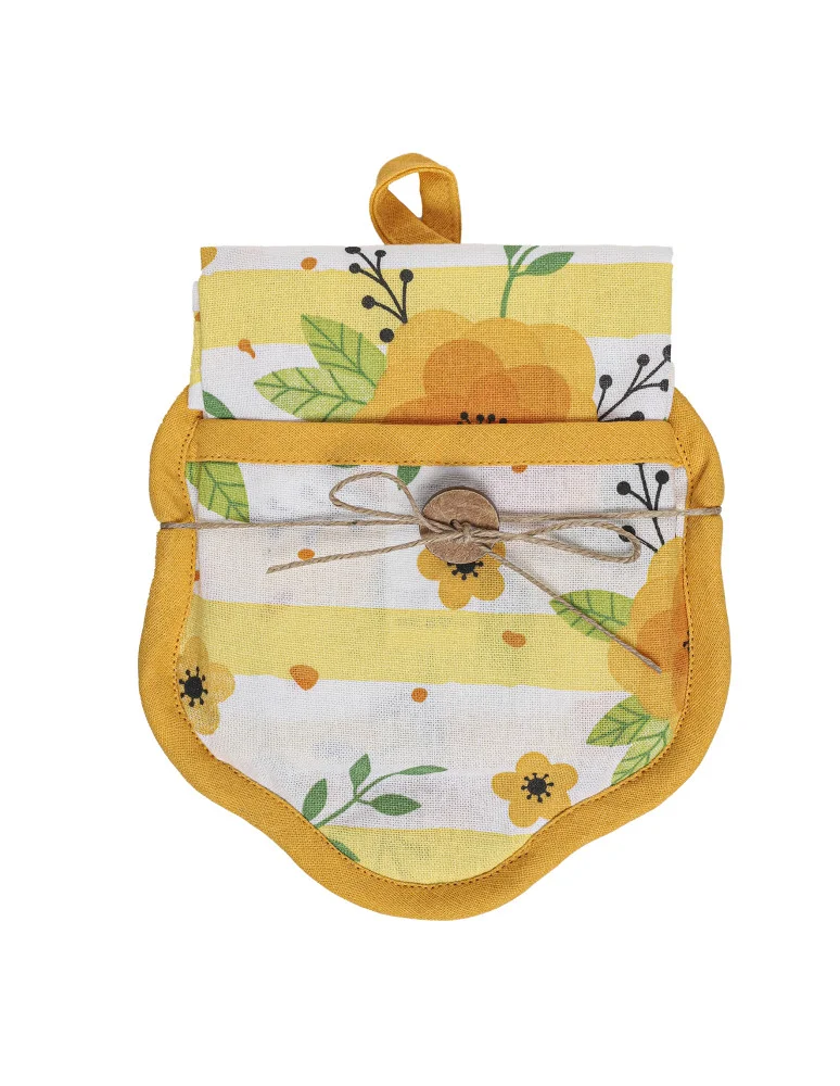 Praktyczny i estetyczny zestaw kuchenny, który doskonale sprawdzi się jako upominek na Dzień Babci, Dzień Mamy, urodziny czy inną okazję. Zestaw zawiera bawełnianą ściereczkę kuchenną oraz rękawicę, która może również pełnić funkcję podkładki pod gorące naczynia. Idealny do codziennego użytku i jako gotowy prezent bez konieczności dodatkowego pakowania.