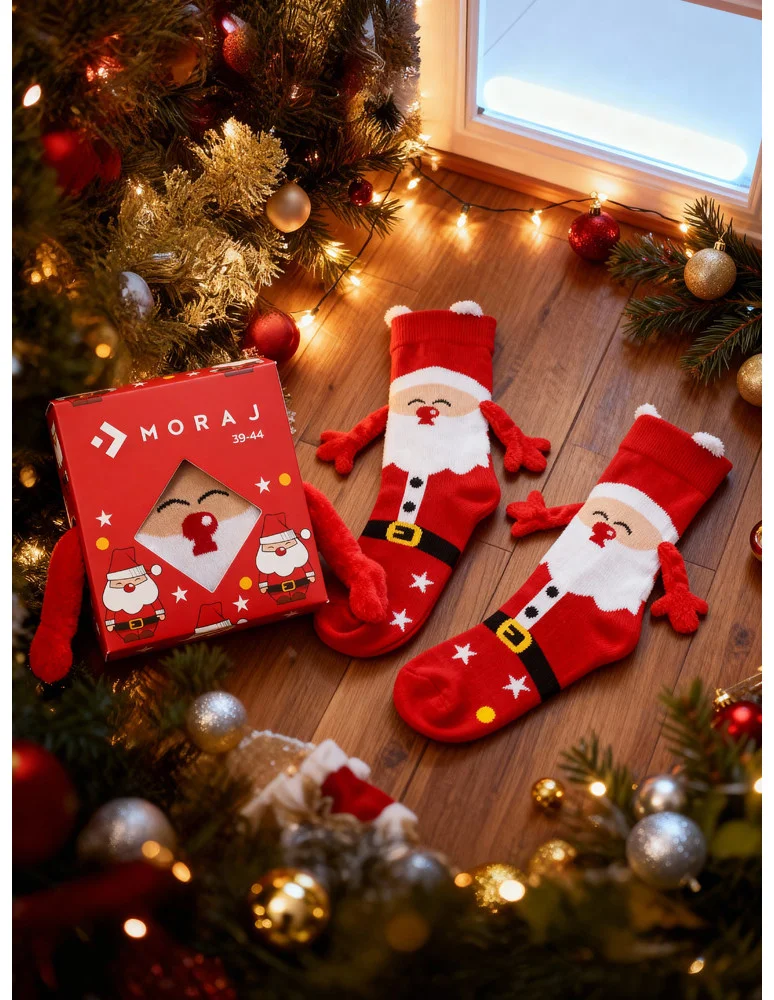 Wprowadź świąteczny klimat do swojej garderoby dzięki zabawnym i oryginalnym skarpetkom Friendsy z motywem Mikołajów! Te wyjątkowe skarpetki łączą niepowtarzalny wzór z komfortem noszenia, a ich największym wyróżnikiem są 3D-rękawiczki Mikołajów, które można ze sobą połączyć – dosłownie trzymają się za ręce! Idealny pomysł na prezent dla Niej i dla Niego – rozmiar uniwersalny 39–44 sprawia, że pasują zarówno na kobiece, jak i męskie stopy. Pakowane w ozdobne pudełko z motywem świątecznym, zachwycą każdego już od pierwszego spojrzenia.