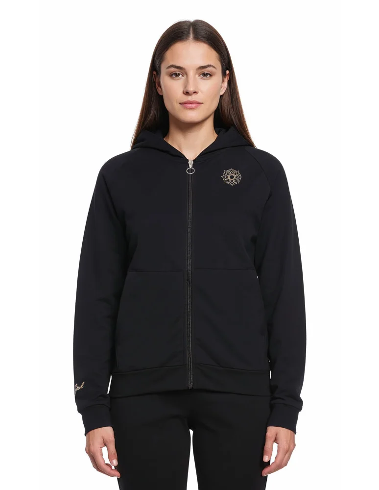 Bluza dresowa damska na zamek z kapturem luźna CZARNY