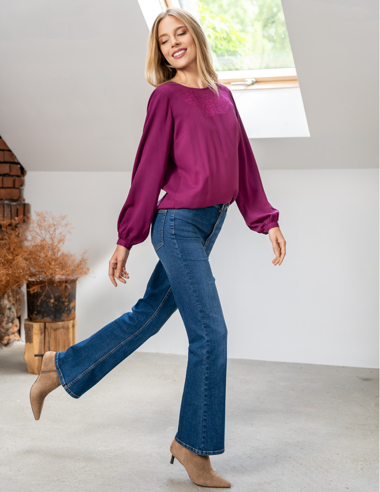 Jeansy dzwony damskie spodnie z wysokim stanem GRANATOWY