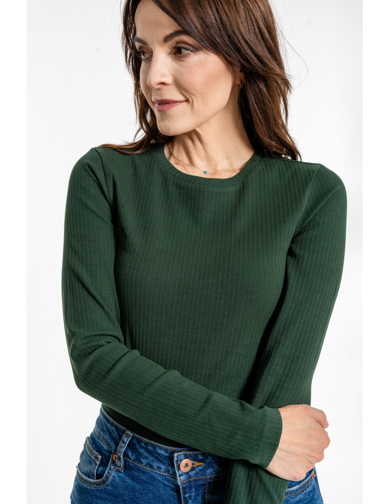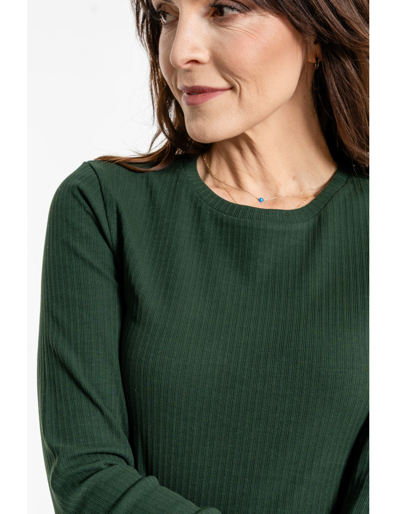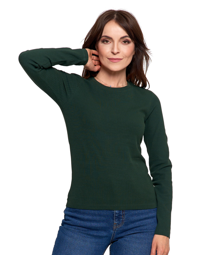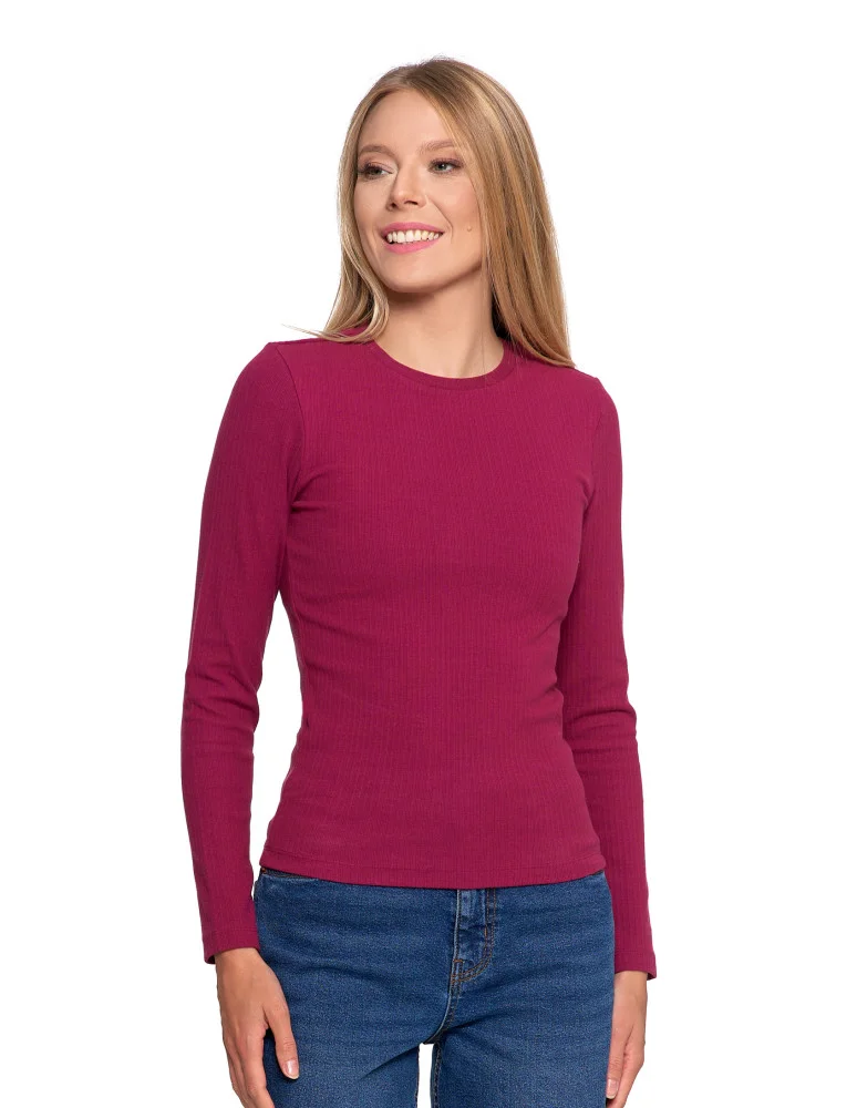 Bluzka damska prążkowana z długim rękawem RÓŻOWY