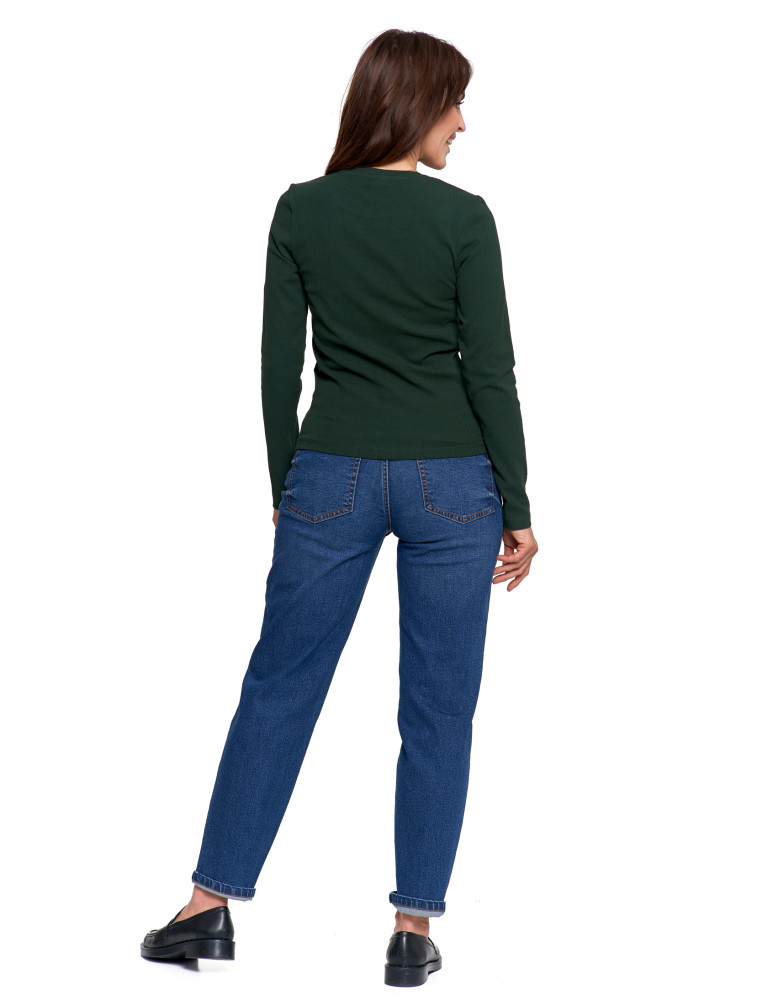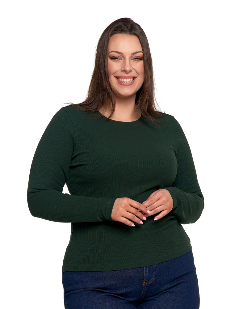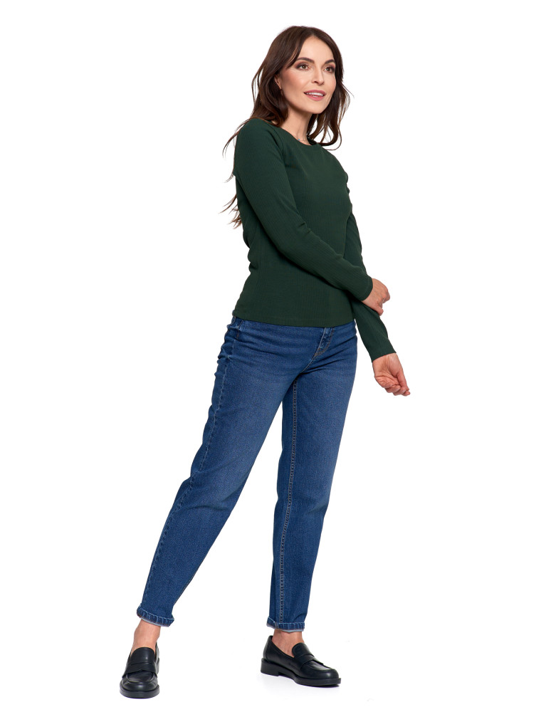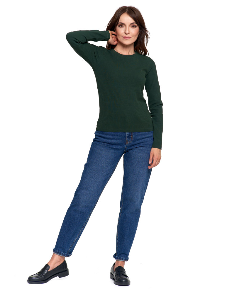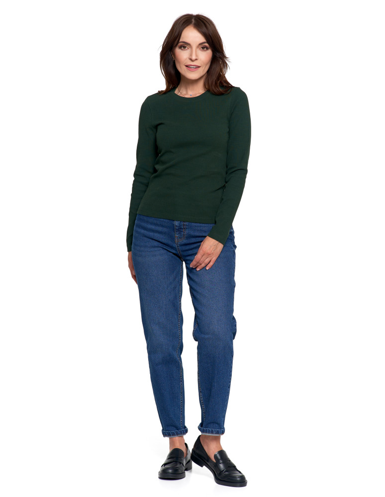 Bluzka damska prążkowana z długim rękawem RÓŻOWY