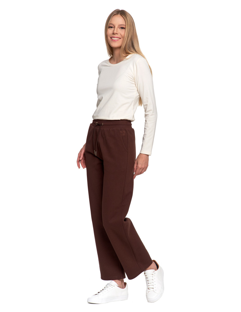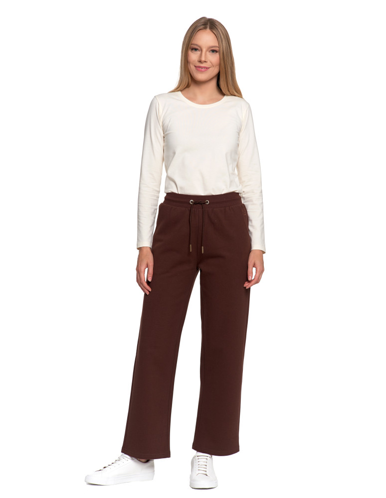 Damskie spodnie dresowe ocieplane z wysokim stanem BEŻOWY