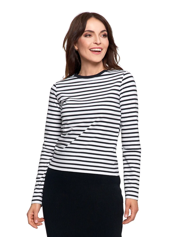 Damska koszulka z długim rękawem w paski z bawełny WZÓR 2