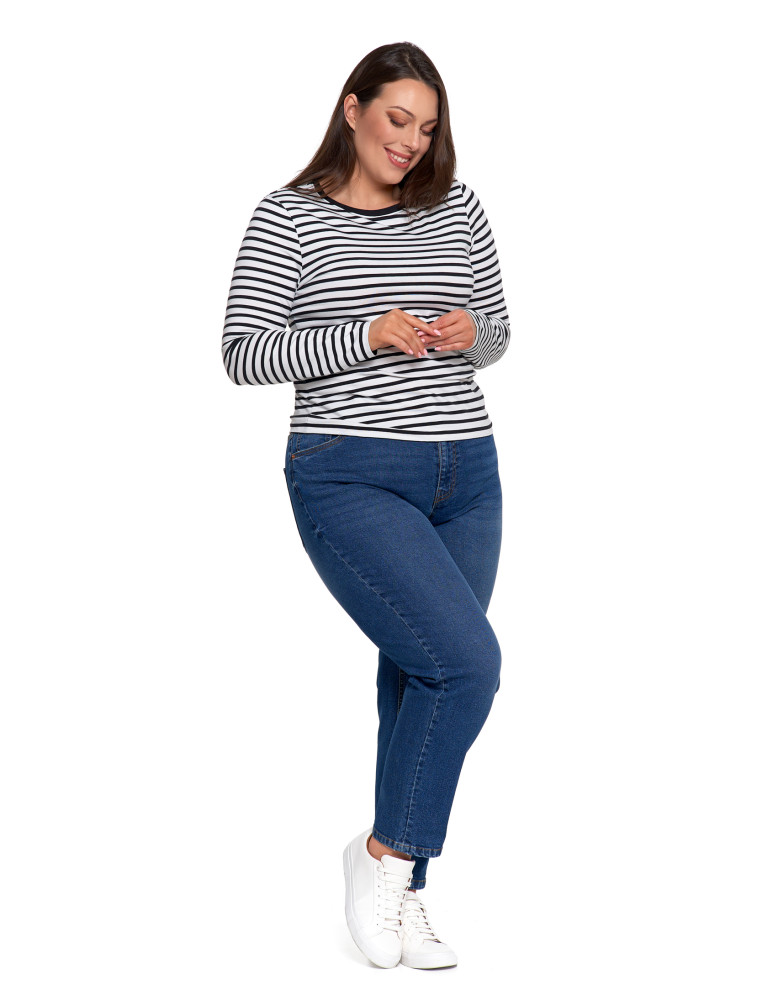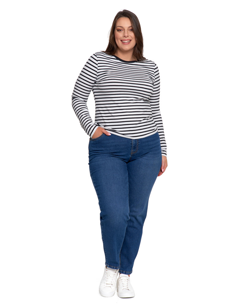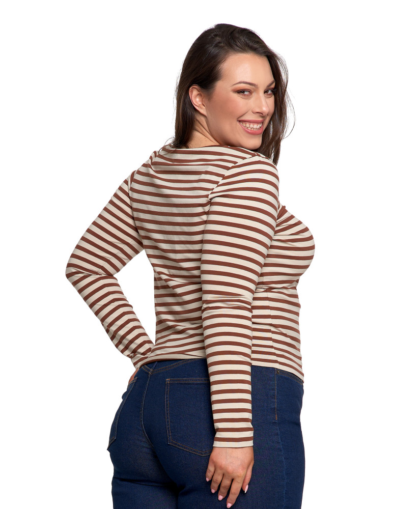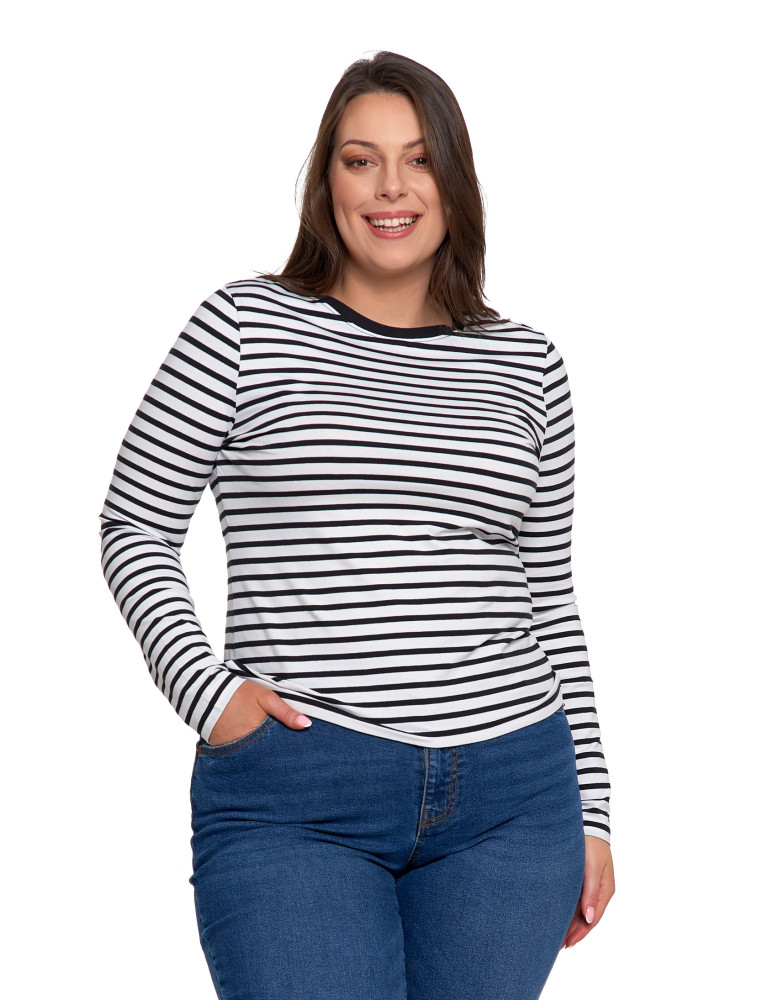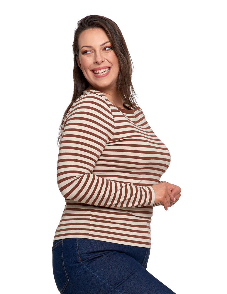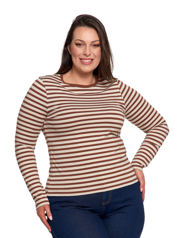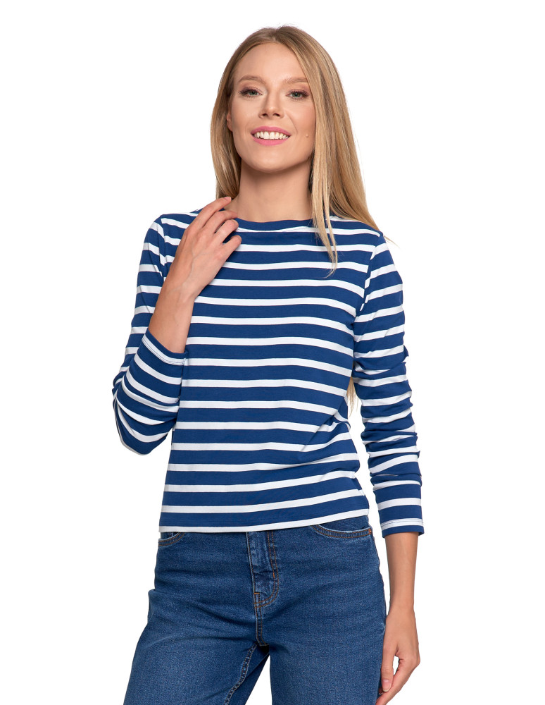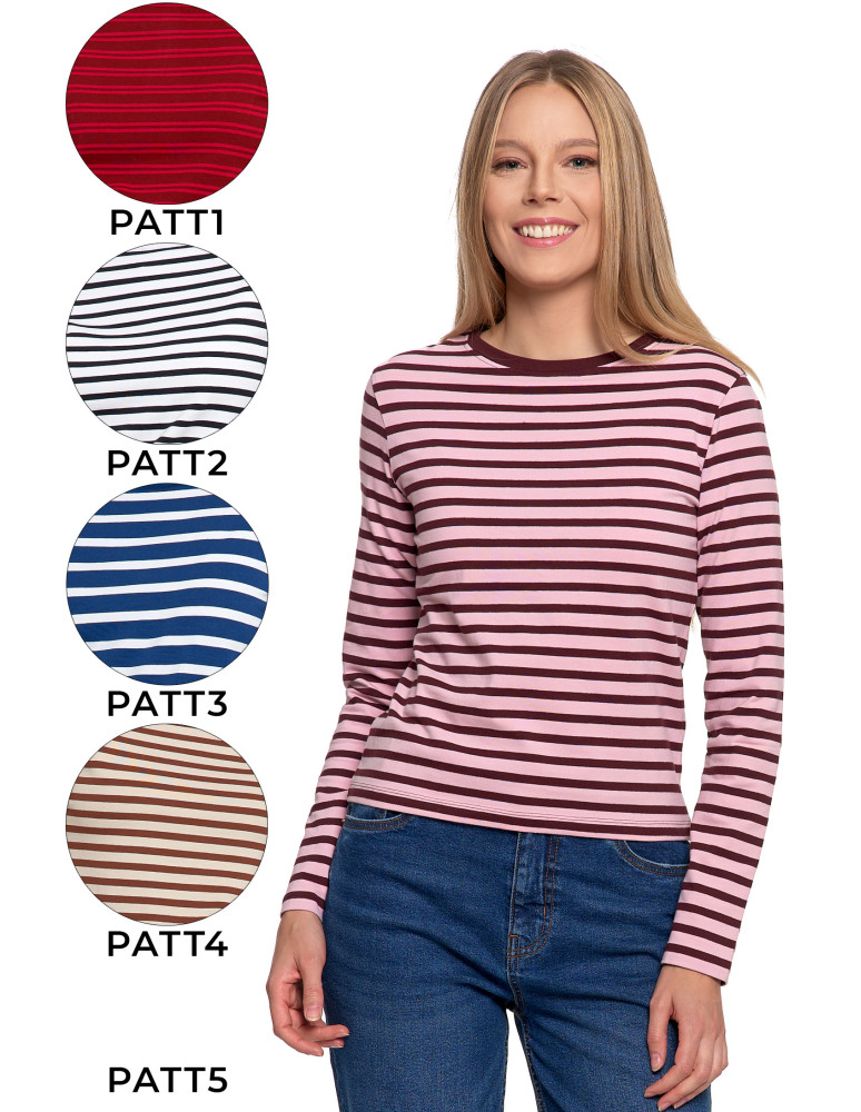 Damska koszulka z długim rękawem w paski z bawełny WZÓR 3