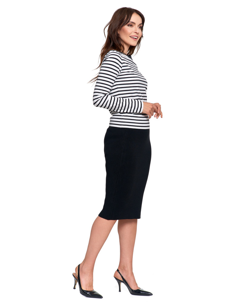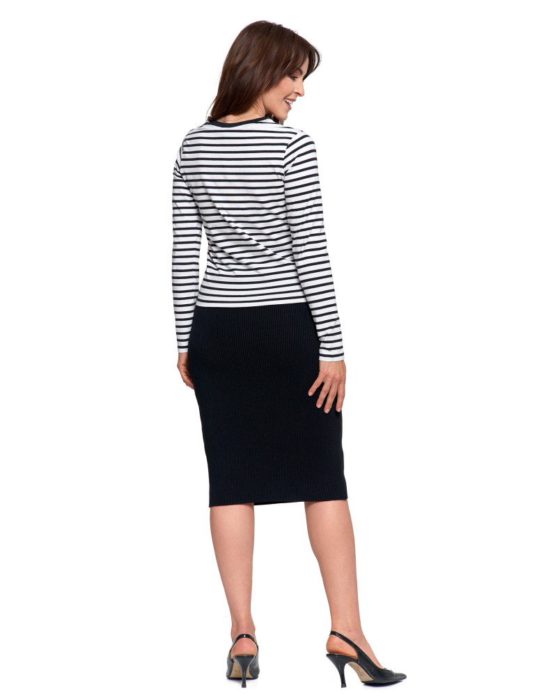 Długi rękaw i miękki materiał sprawiają, że koszulka świetnie sprawdzi się zarówno solo, jak i jako warstwa pod marynarkę, sweter czy kurtkę. Wzór w paski nadaje jej uniwersalnego charakteru - idealna do stylizacji casualowych, miejskich i biurowych.