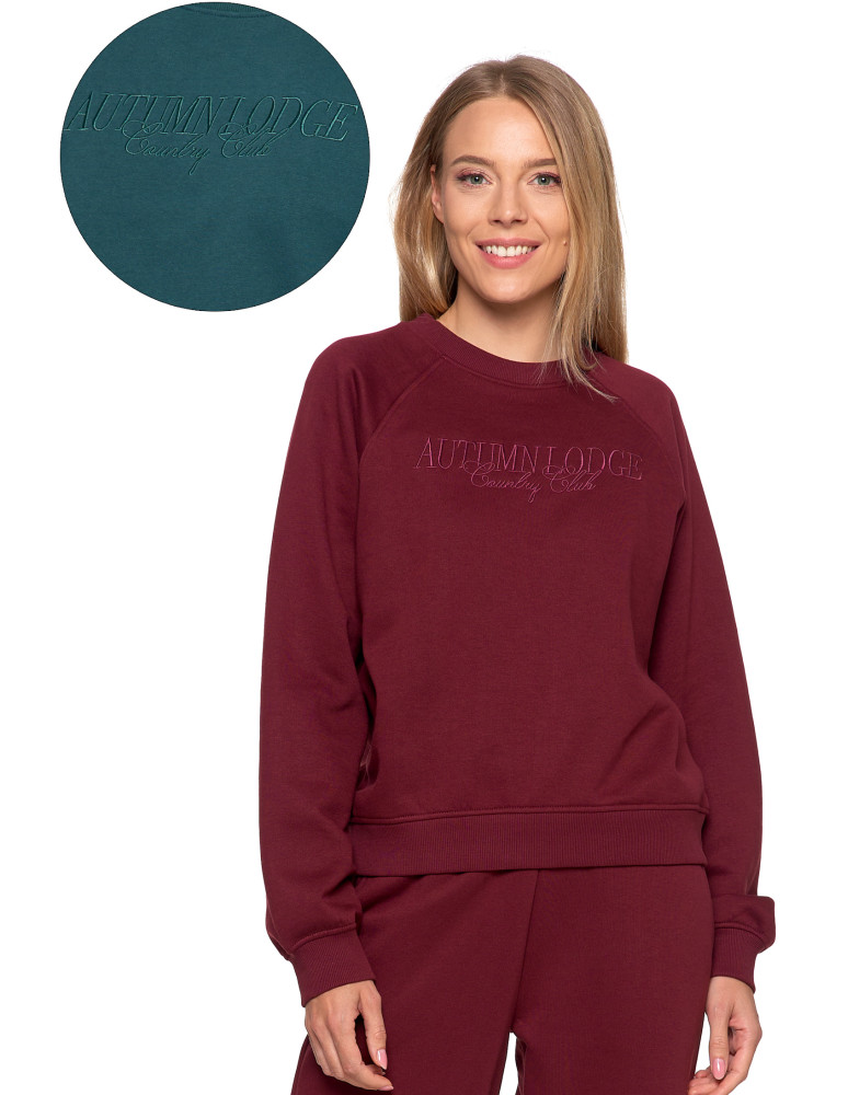 Ciepła dresowa bluza damska to idealny wybór na chłodniejsze dni. Wykonana z miękkiej dzianiny bawełnianej i ocieplona delikatnym meszkiem od wewnątrz, zapewnia nie tylko komfort termiczny, ale i basicowy wygląd. Dzięki luźnemu krojowi, okrągłemu dekoltowi oraz ściagaczom przy rękawach i u dołu, bluza doskonale układa się na sylwetce. Subtelny haft w kolorze materiału nadaje jej elegancji i charakteru. Wkładana przez głowę, bez kaptura, świetnie sprawdzi się zarówno w codziennych stylizacjach, jak i jako element wygodnego zestawu domowego.