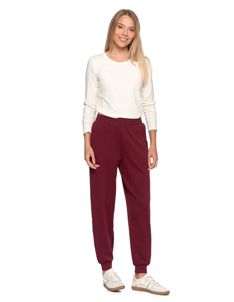 Damskie spodnie dresowe z bawełny BORDOWY