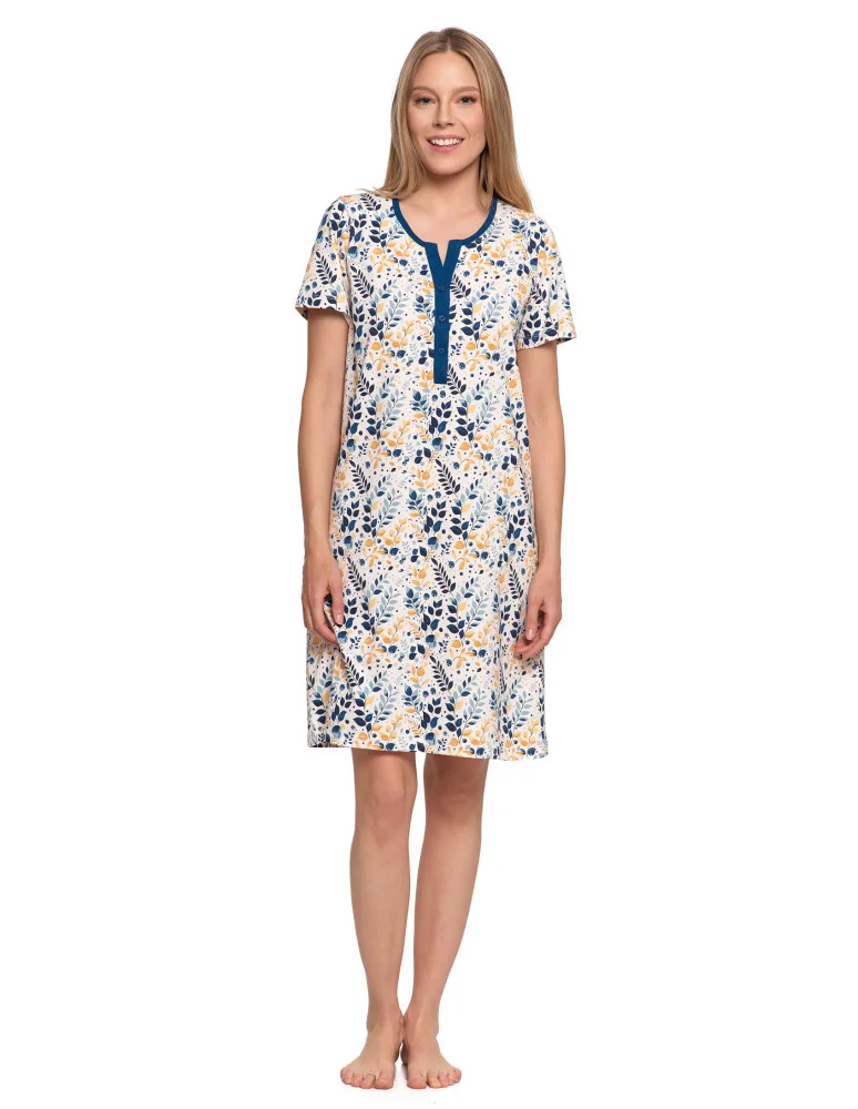 Koszula nocna damska bawełniana z krótkim rękawem KREMOWY