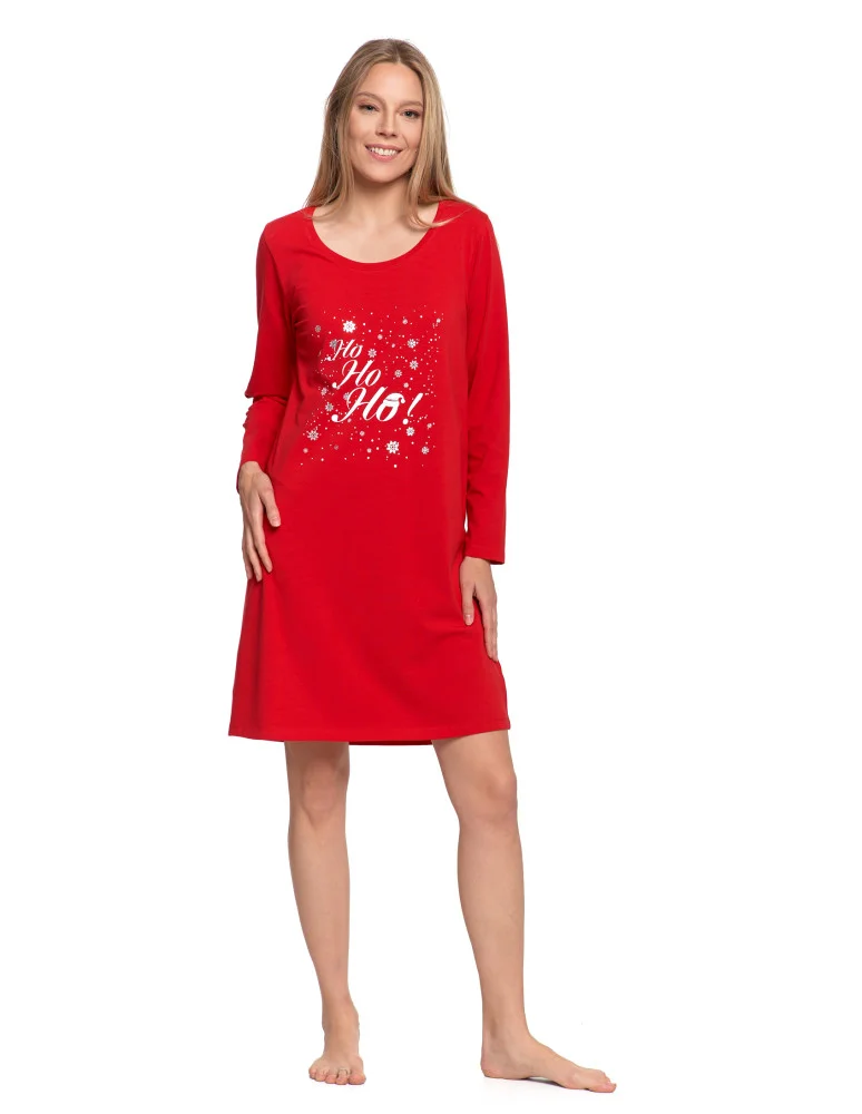 Damska koszula nocna świąteczna z długim rękawem CZERWONY