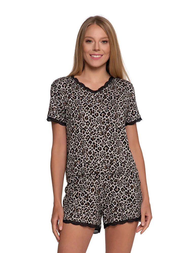 Piżama damska z wiskozy krótki rękaw i szortami panterka WZÓR 1
